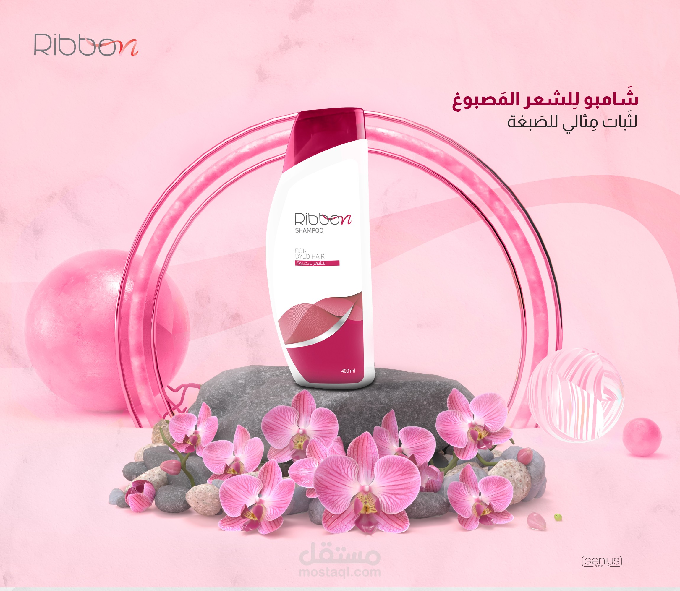 التصاميم الخاصة بشركة ريبون المختصة بصناعة الشامبو والمستحضرات التجميلية على الانستغرام والفيسبوك