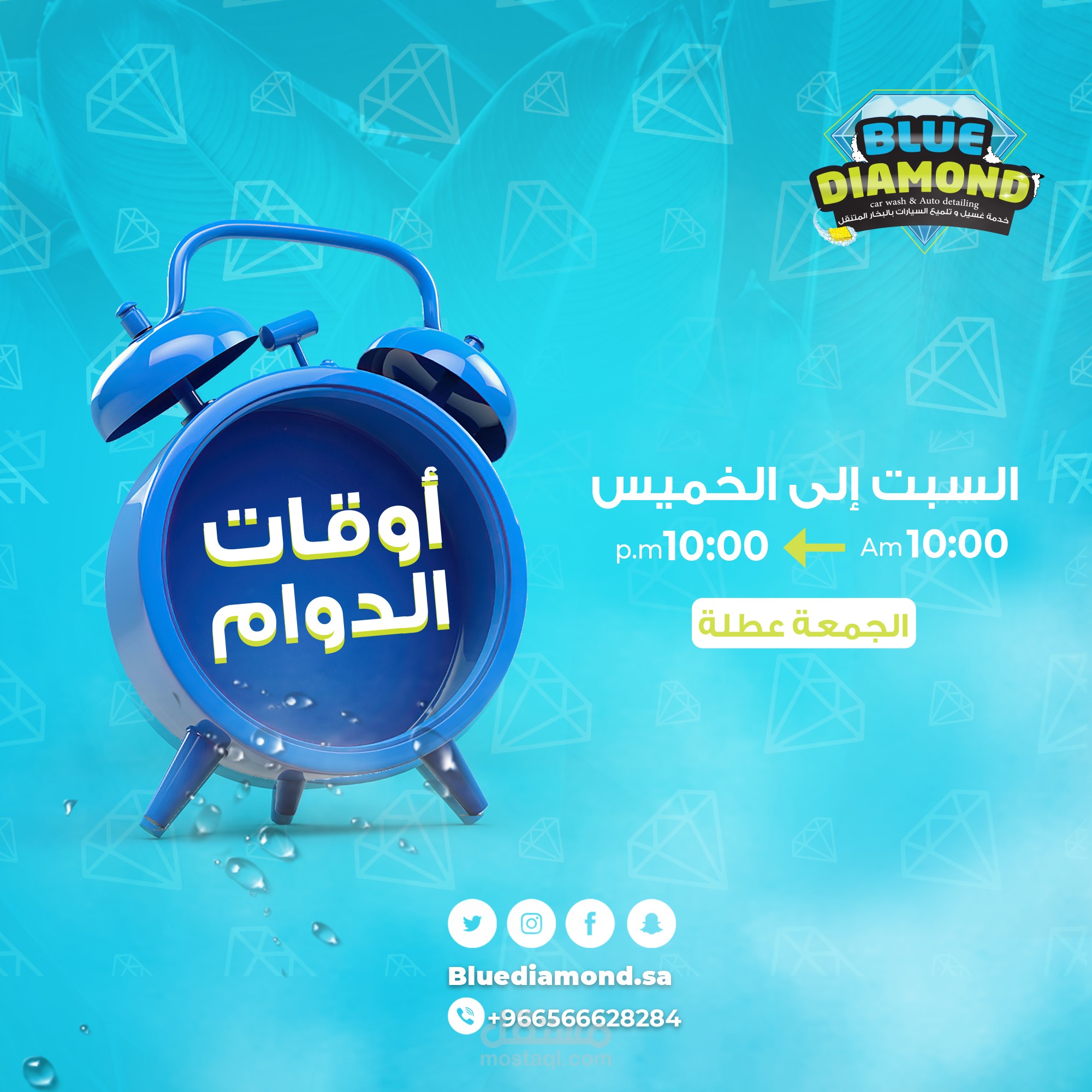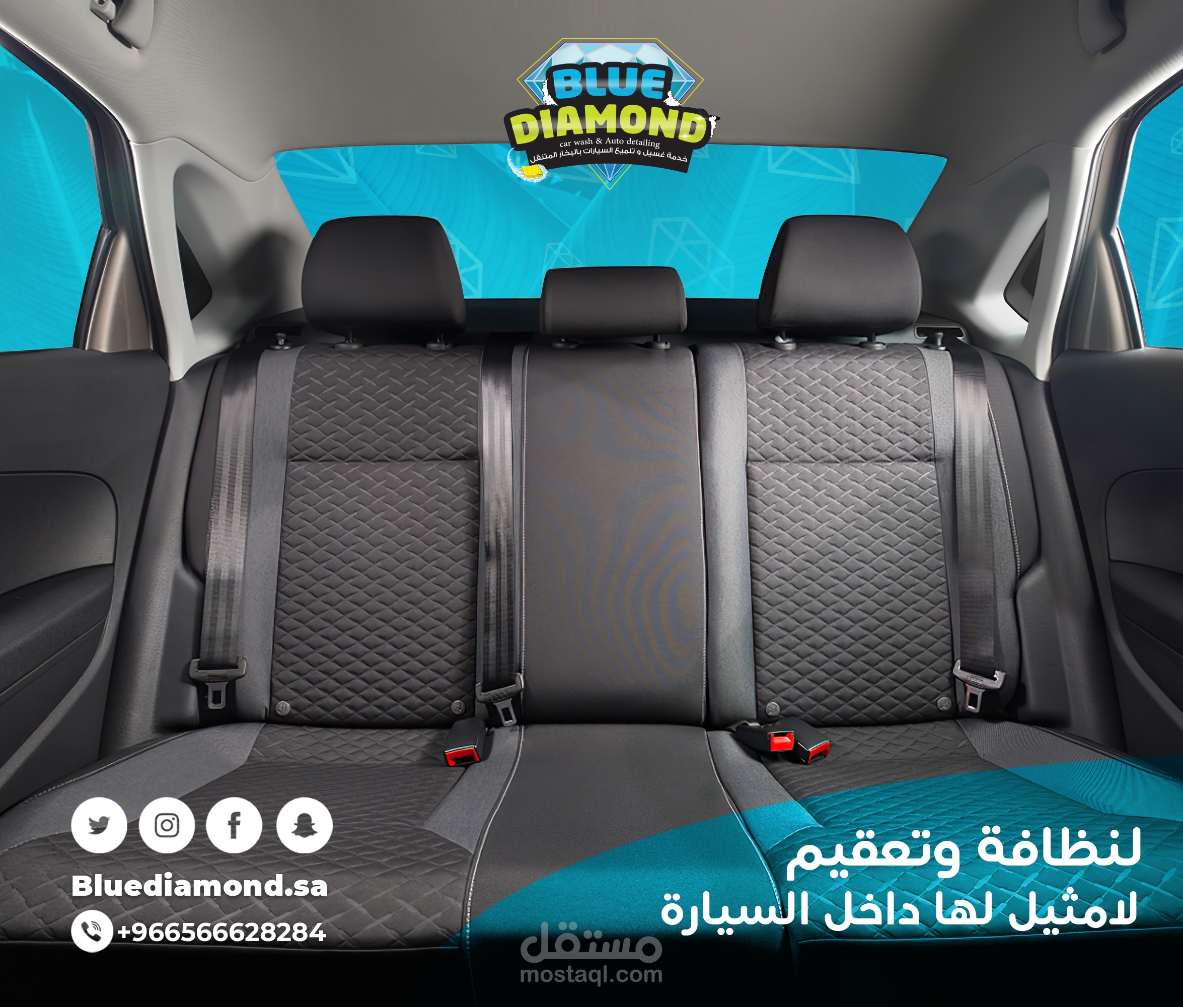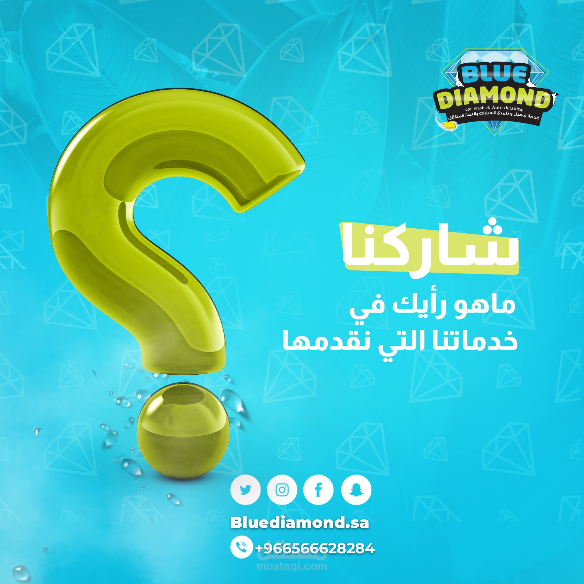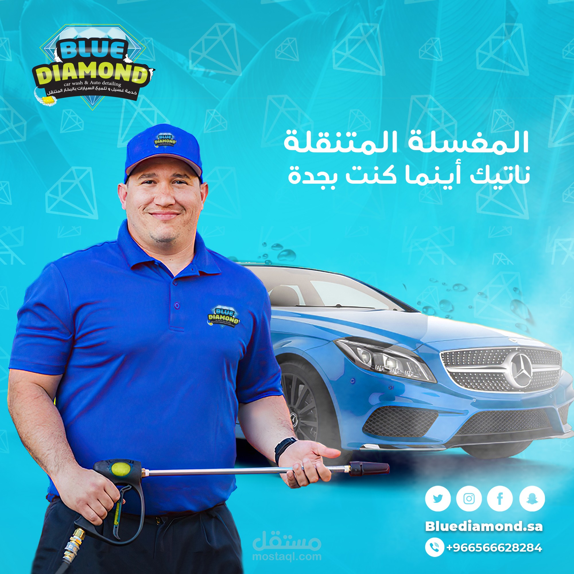 التصاميم الخاصة لشركة Blue Diamond المختصة في غسيل البخار للسيارات على الانستغرام والفيسبوك والتويتر