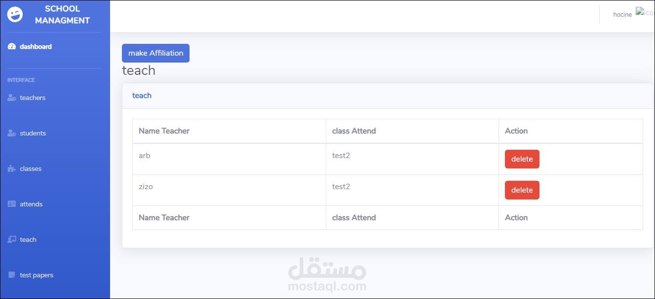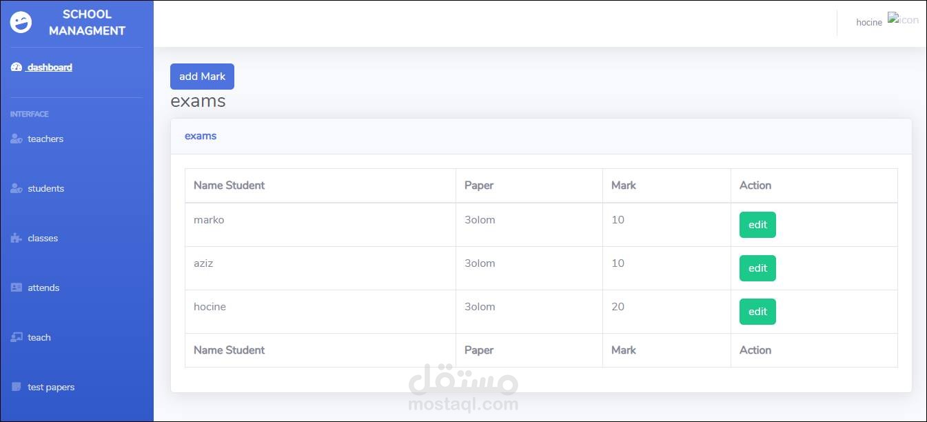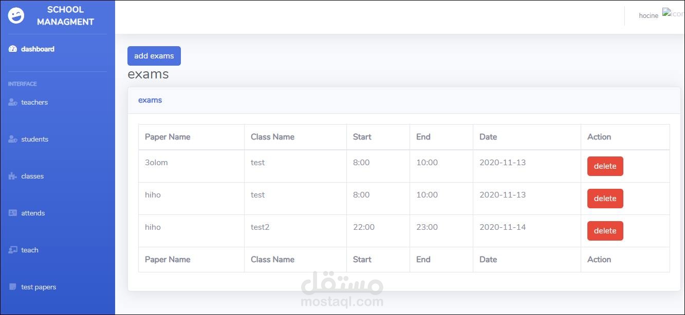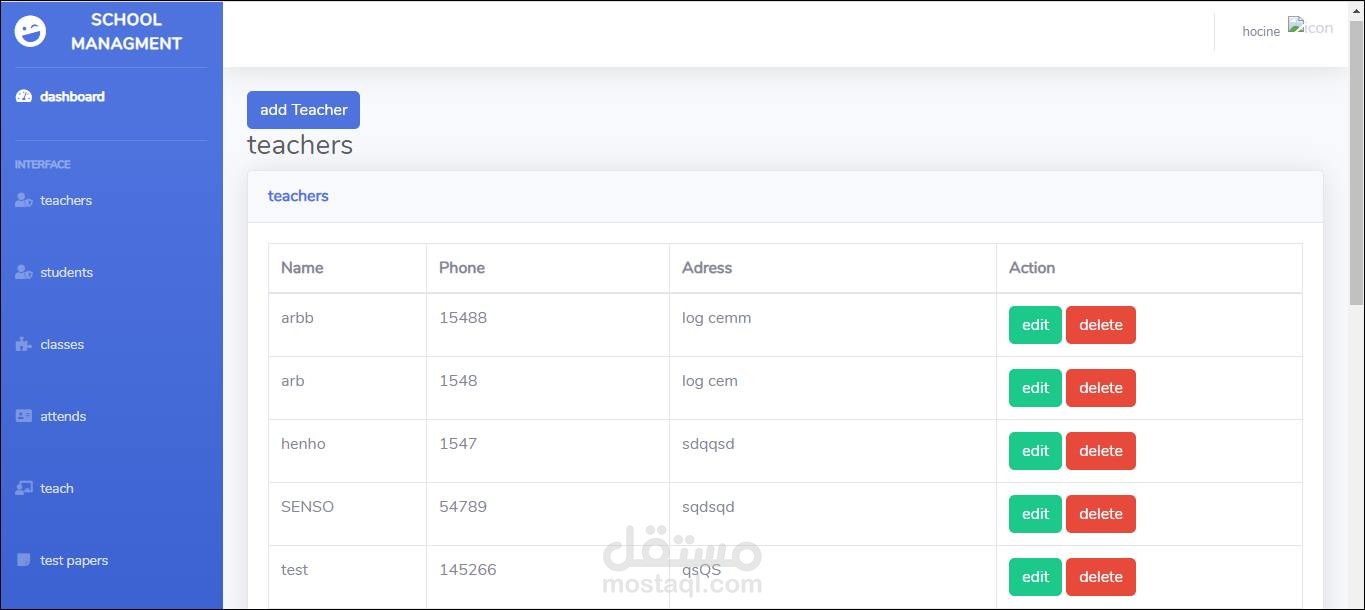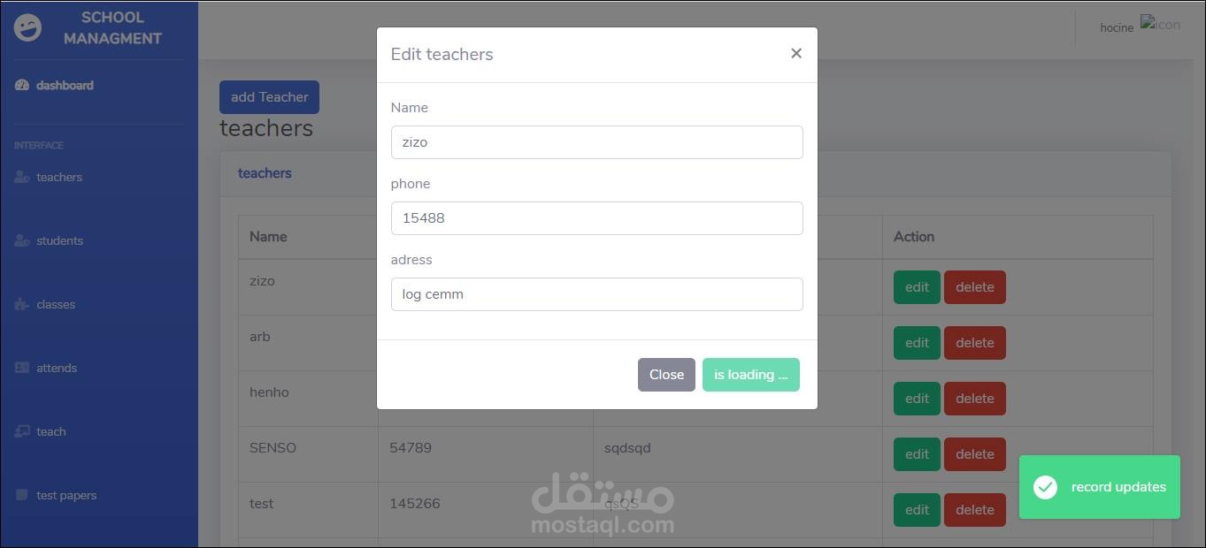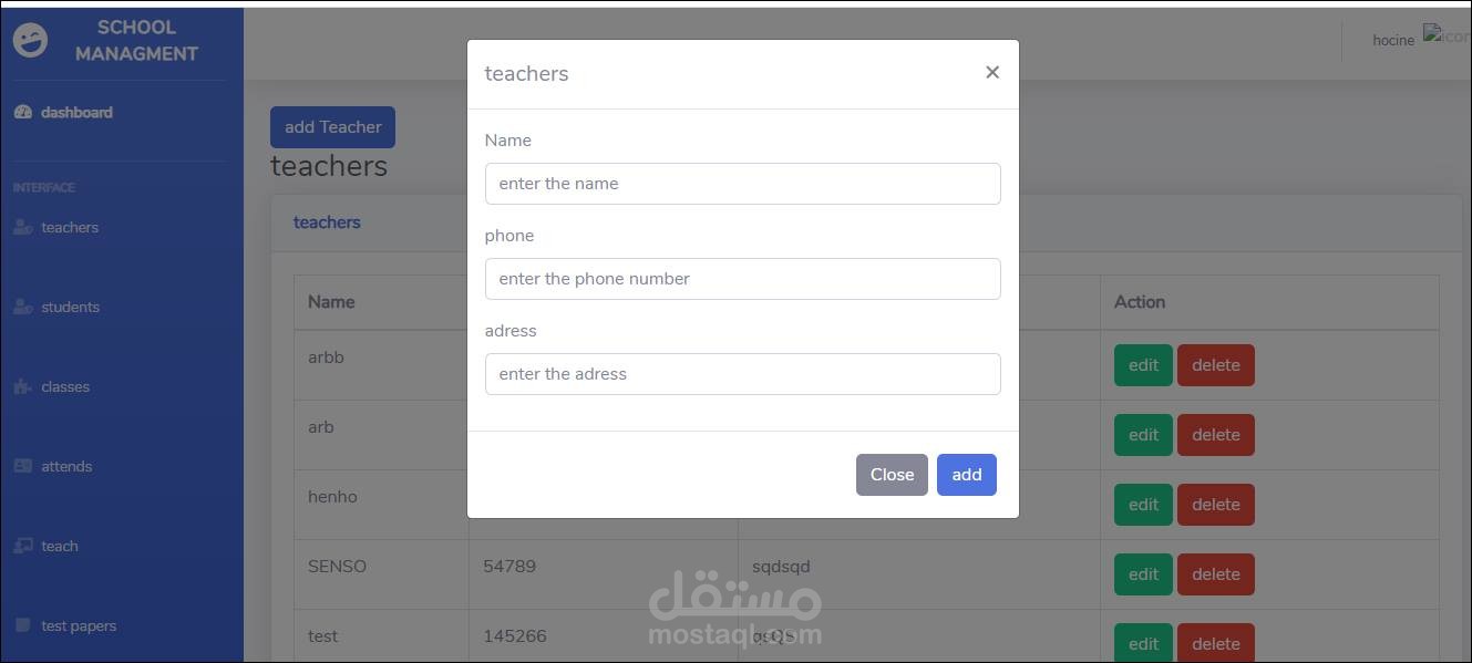 إضافة تحديث وحذف مدرس