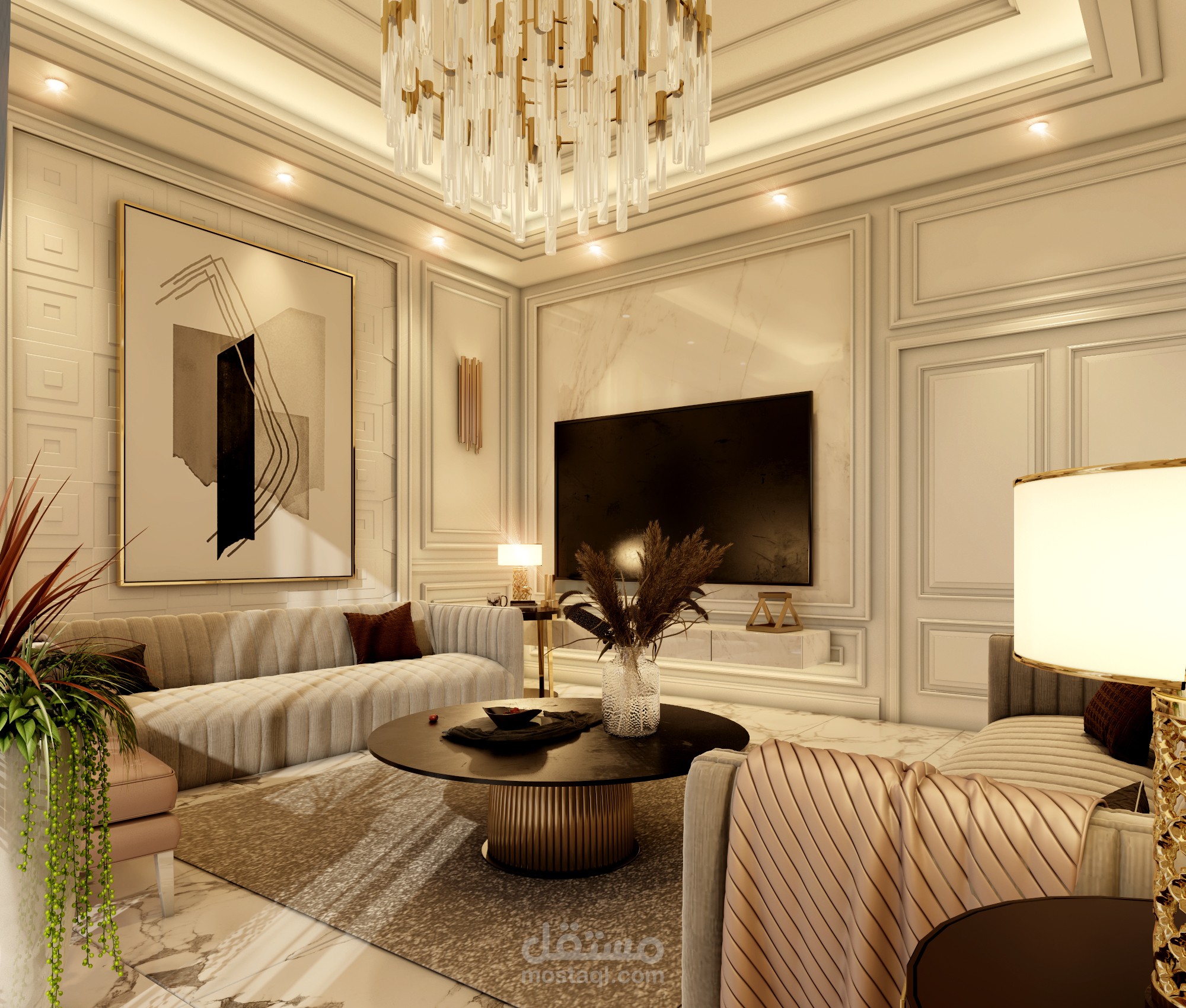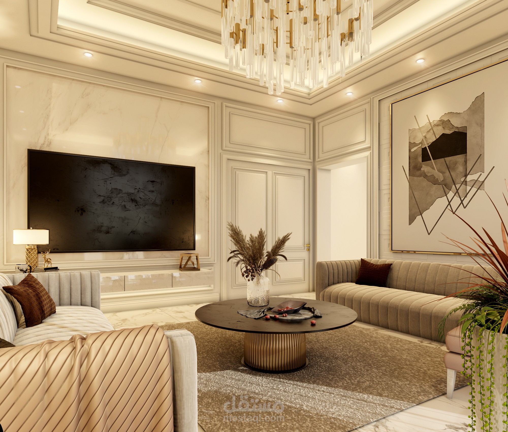 تصميم داخلي لمجلس نساء على نمط نيو كلاسيك بشكل انيق ويعكس روح الفيلا كاملة