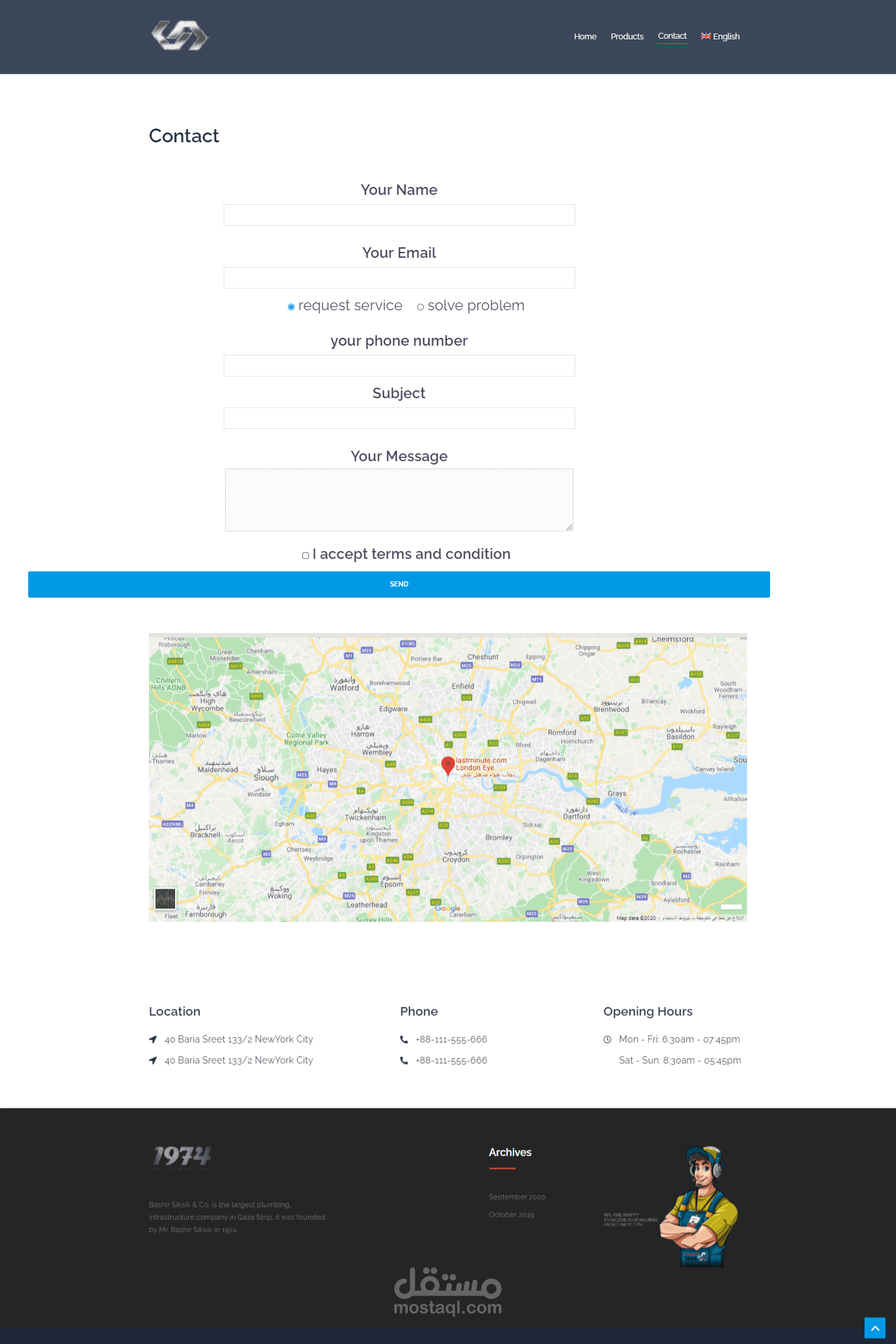 تصميم موقع لشركة السكسك باستخدام الوردبريس wordpress وذلك باستخدام قالب sydney , والتعديل باستخدام elementor