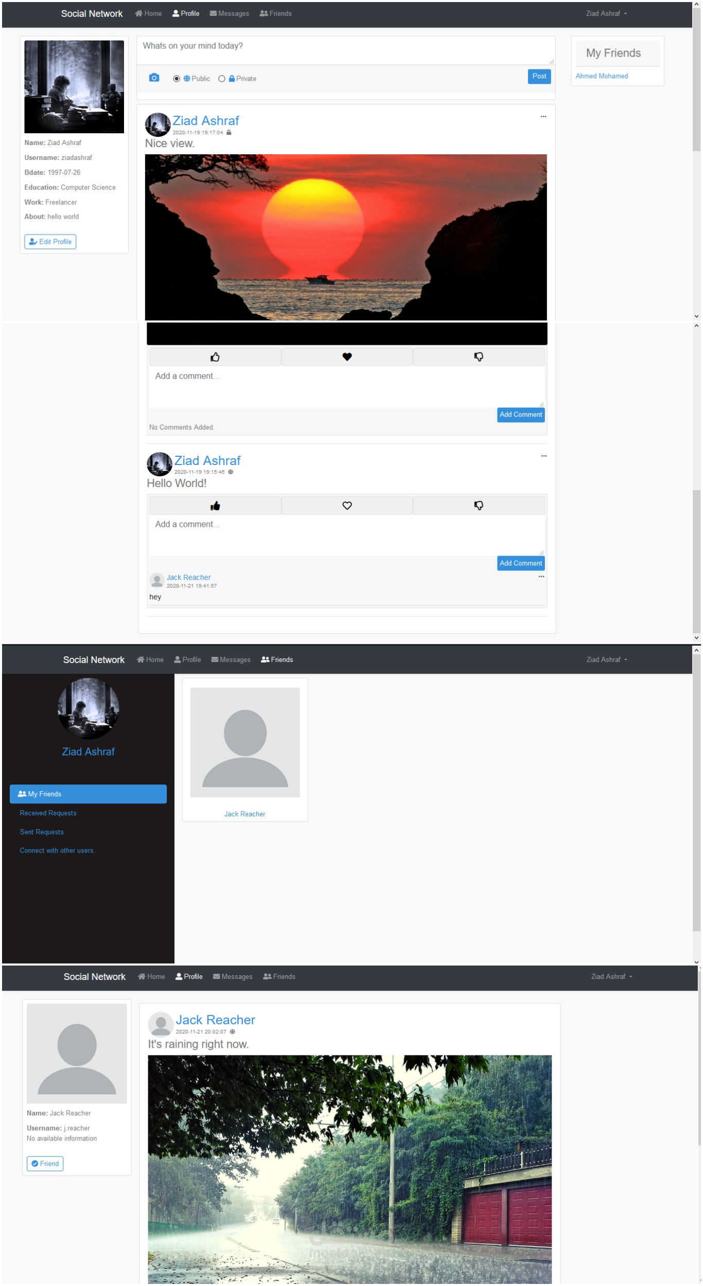 A website created using Laravel framework that allows people to socialize and interact with others allowing them to add friends, post about their own social life and interacting with other users' posts.