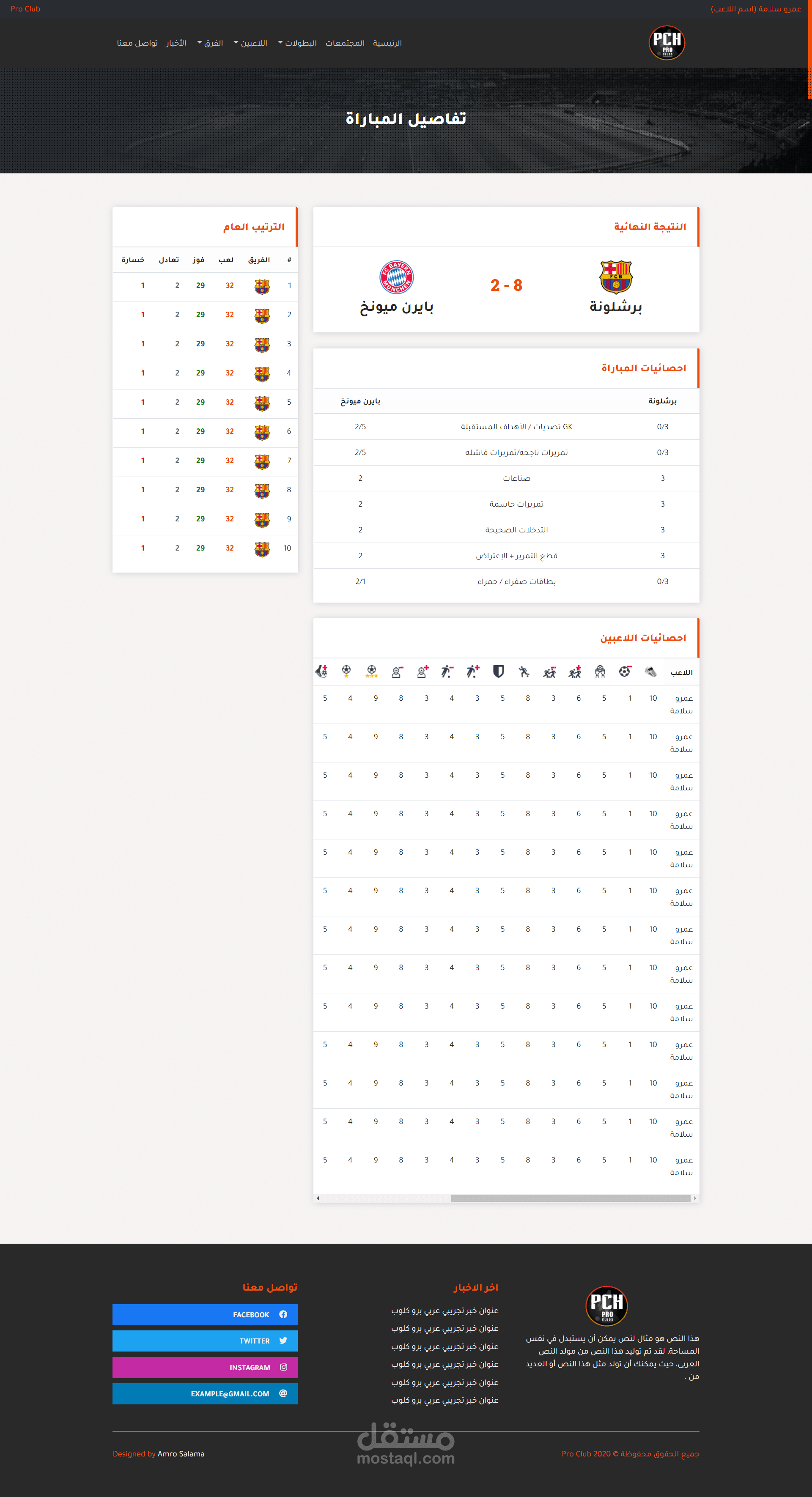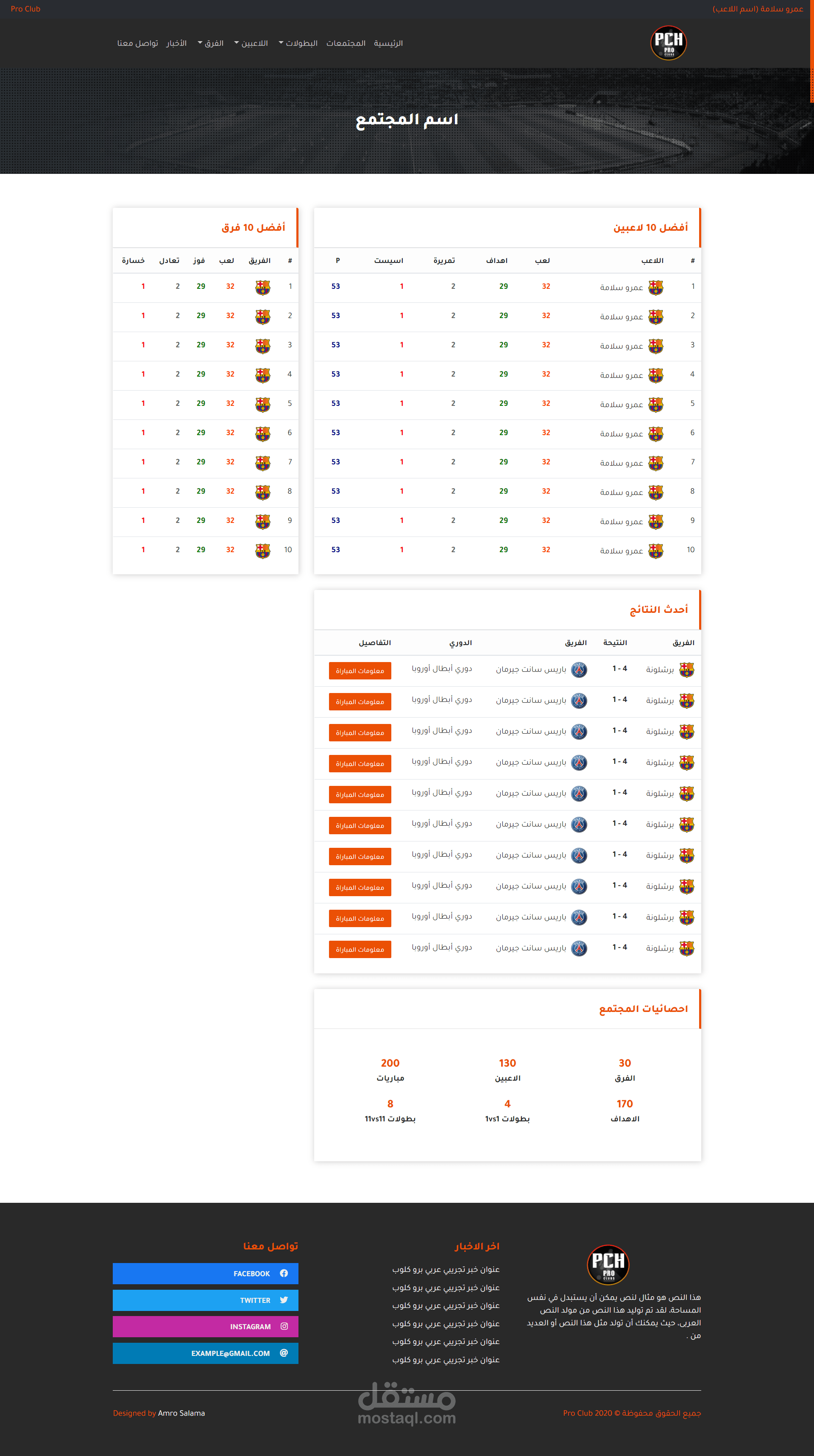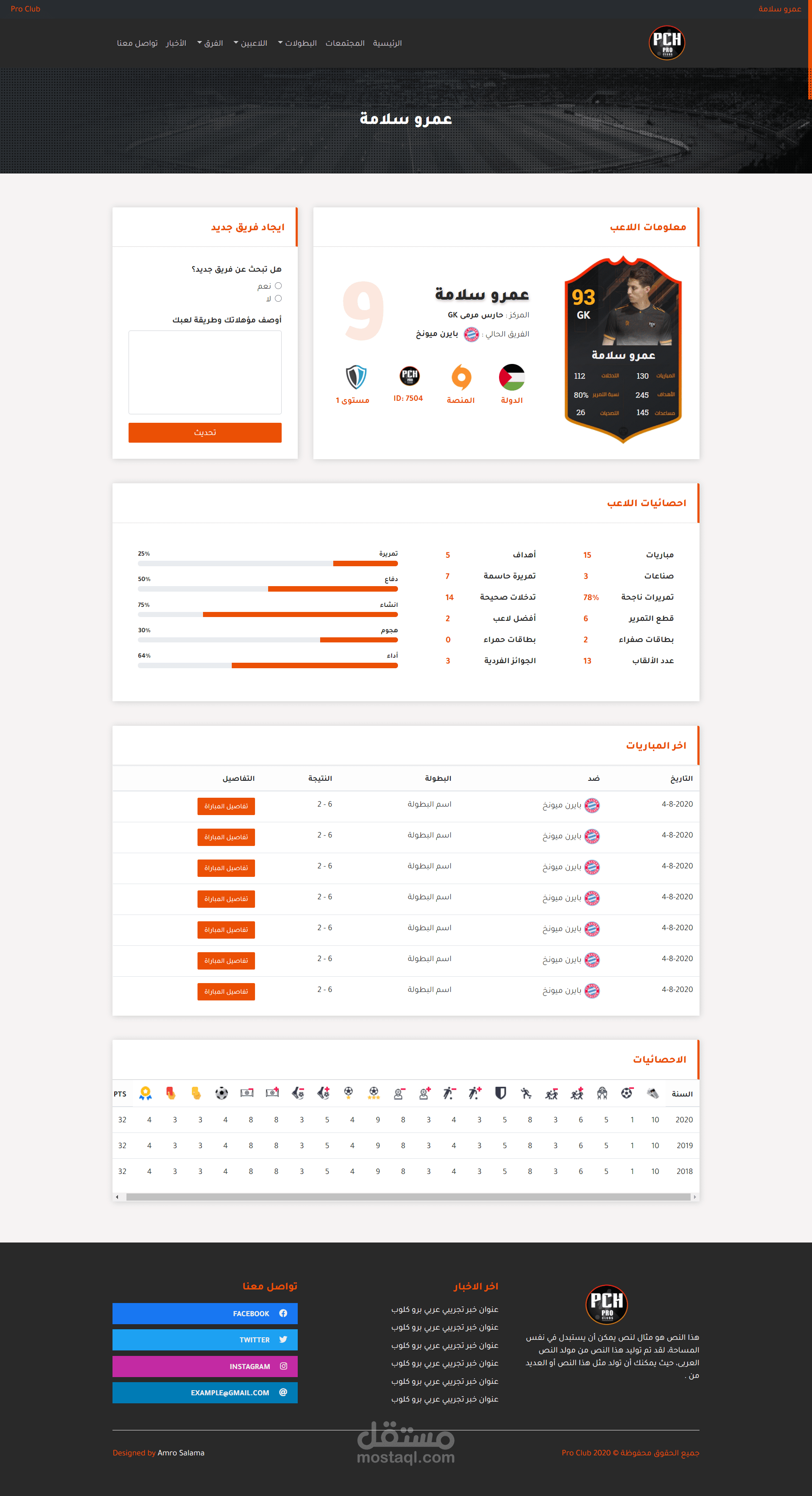 وبعد لعب المباريات يقوم الموقع بتسجيل احصائيات المباريات واللاعبين تصنيفهم