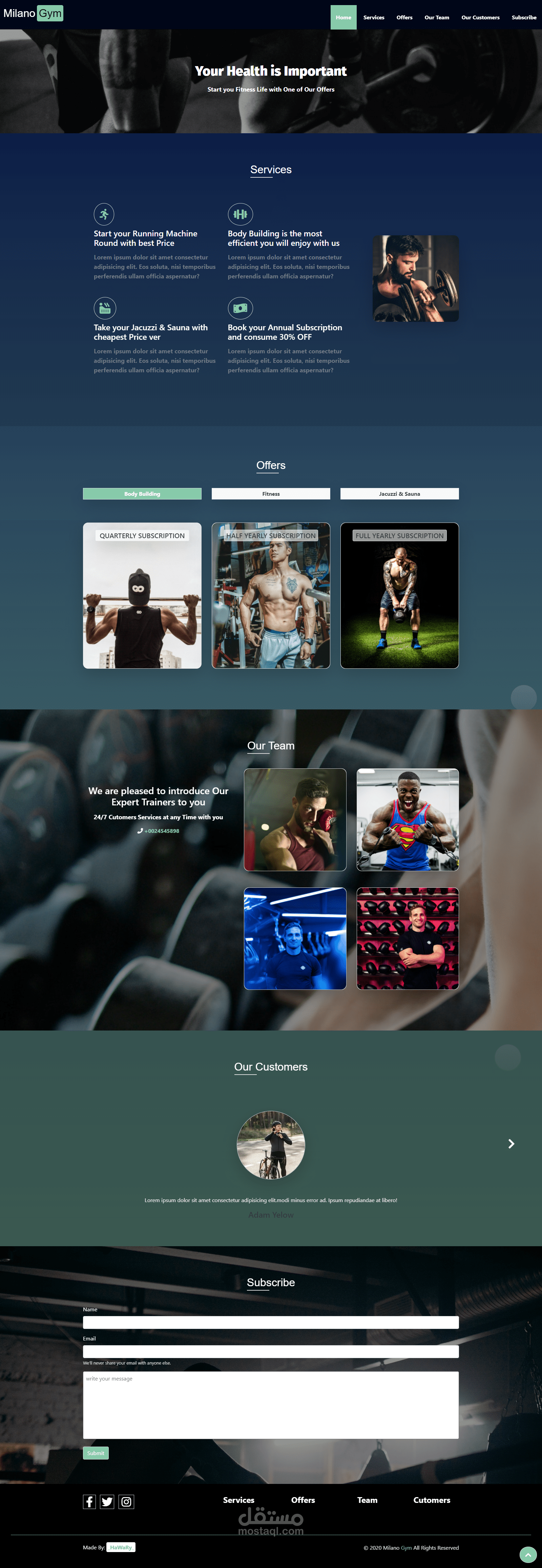 مشروع نموذج صفحة هبوط مستجيبة HTML5 لصالة ألعاب رياضية.