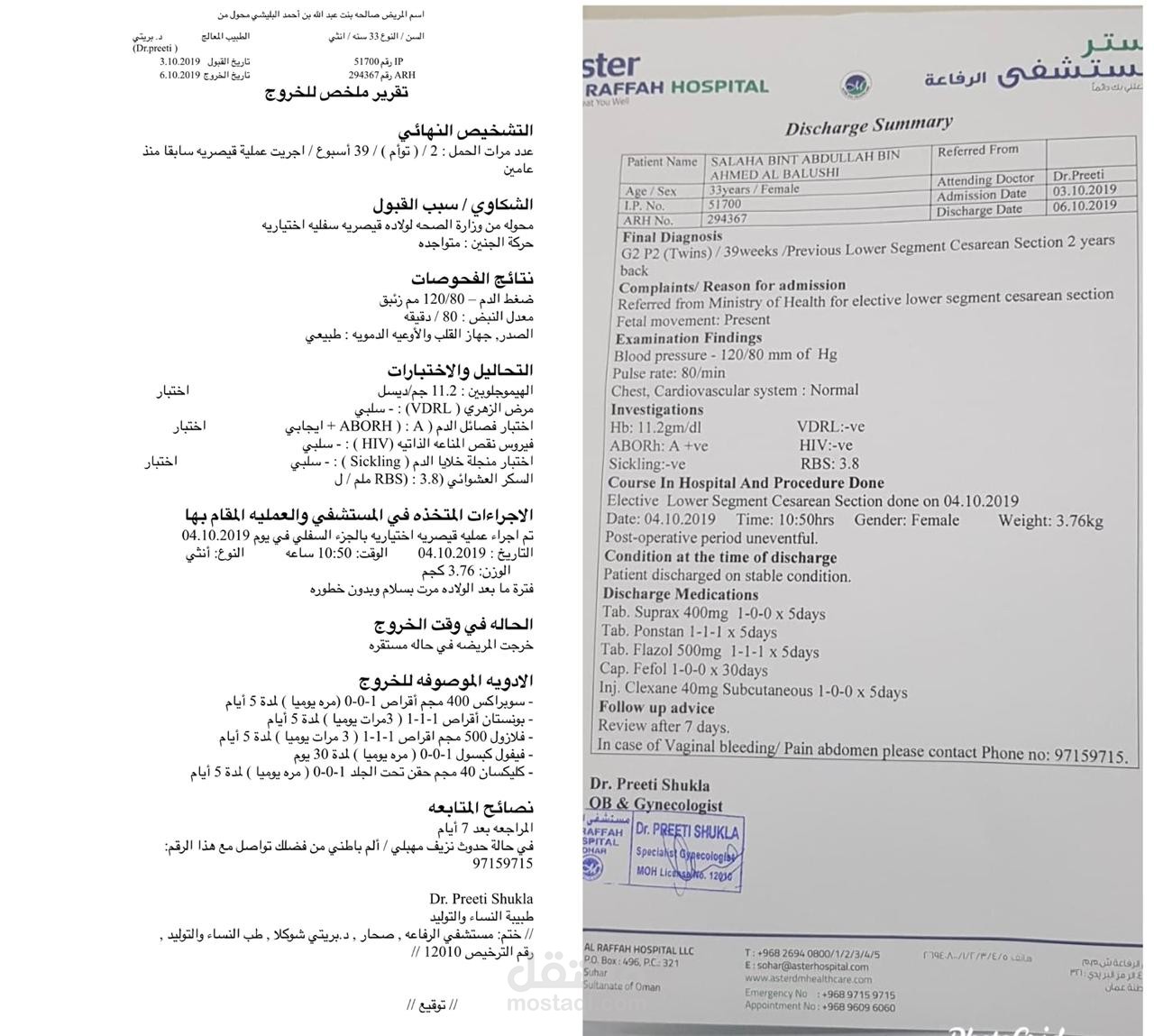 Medical Report for a patient translated from english to arabic