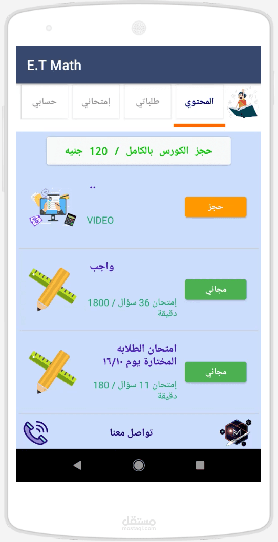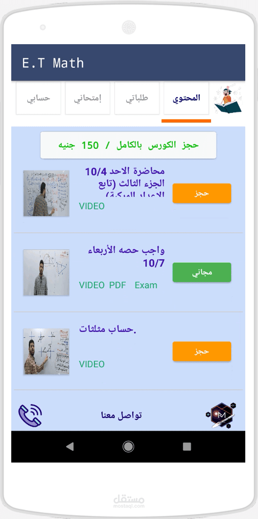 نظام متكامل لتدريس الرياضيات و إيصال المحتوي العلمي للطلاب وعقد الإختبارات الإلكترونية وغيرها من مهام التدريس الحديثة , يأتي النظام في صورة تطبيقين مرتبطين معا ..