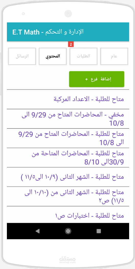 4 - تحت كل كورس أساسي أو فرع تعليمي , يستطيع المعلم أو صاحب المحتوي إضافة عدد غير محدود من الدروس المجانية و المدفوعة .
