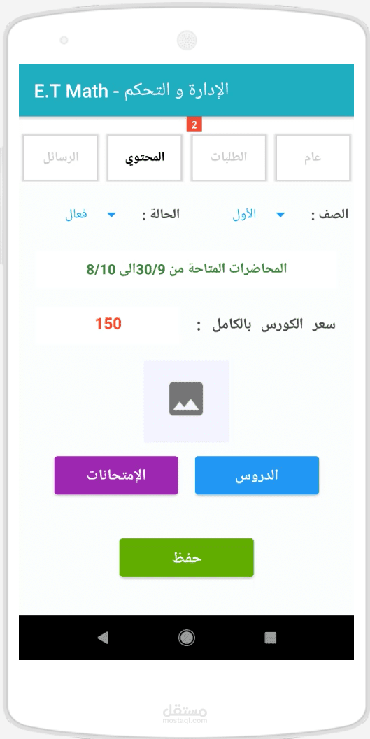 من خلال هذا التطبيق يستطيع المعلم إدارة المحتوي و الطلبات و التواصل مع الطلاب بشكل كامل ويشمل .