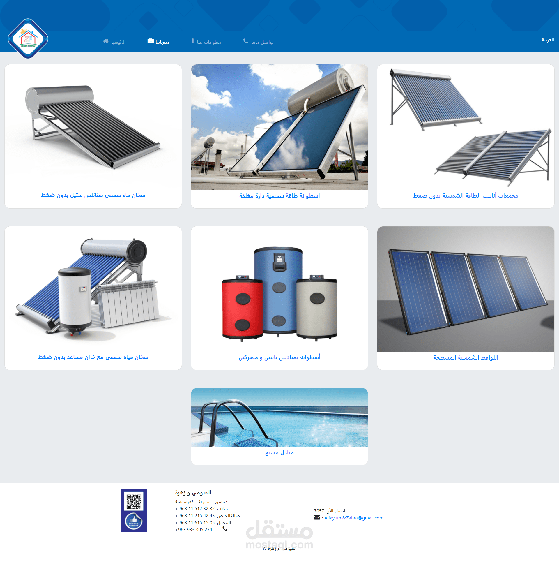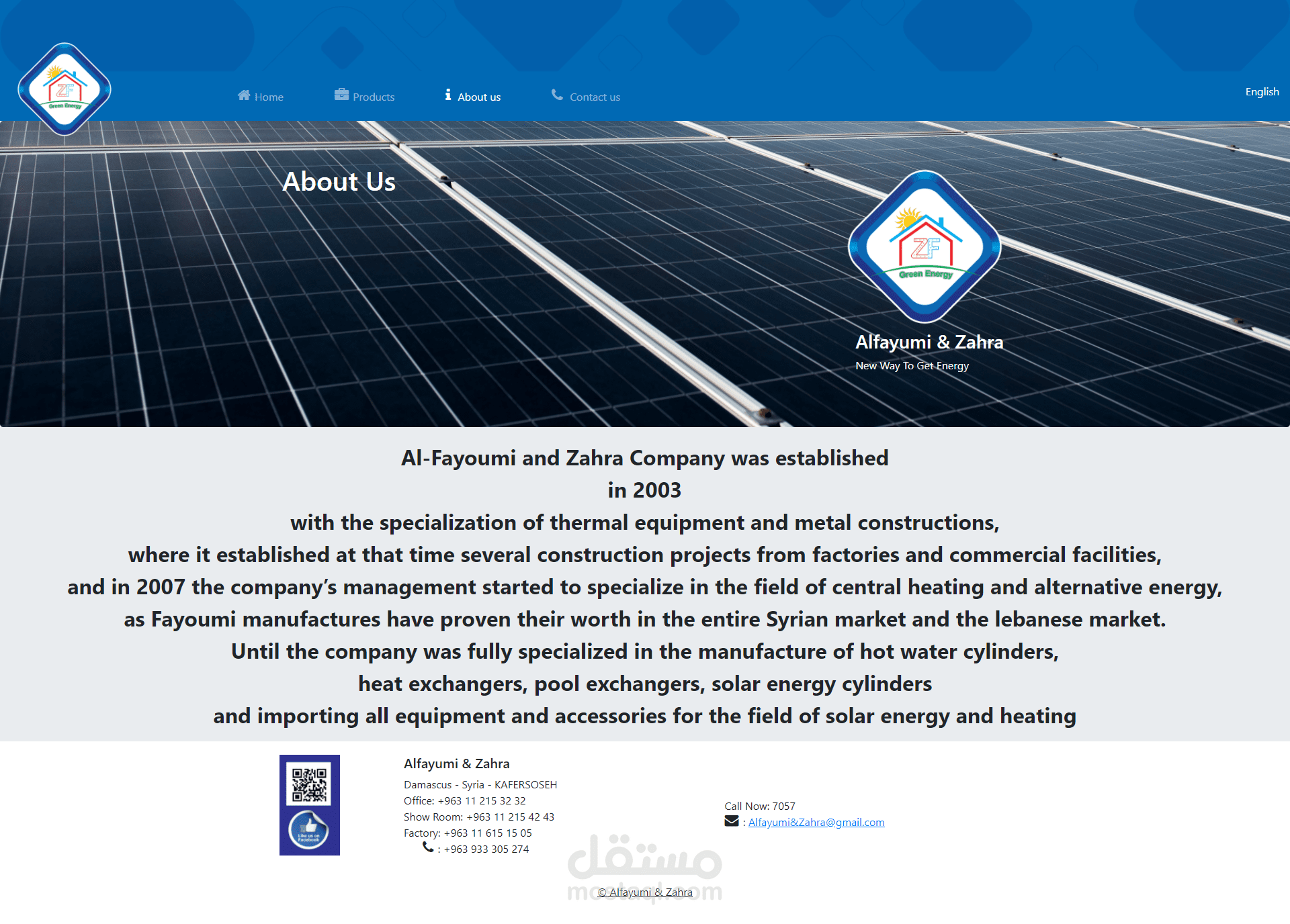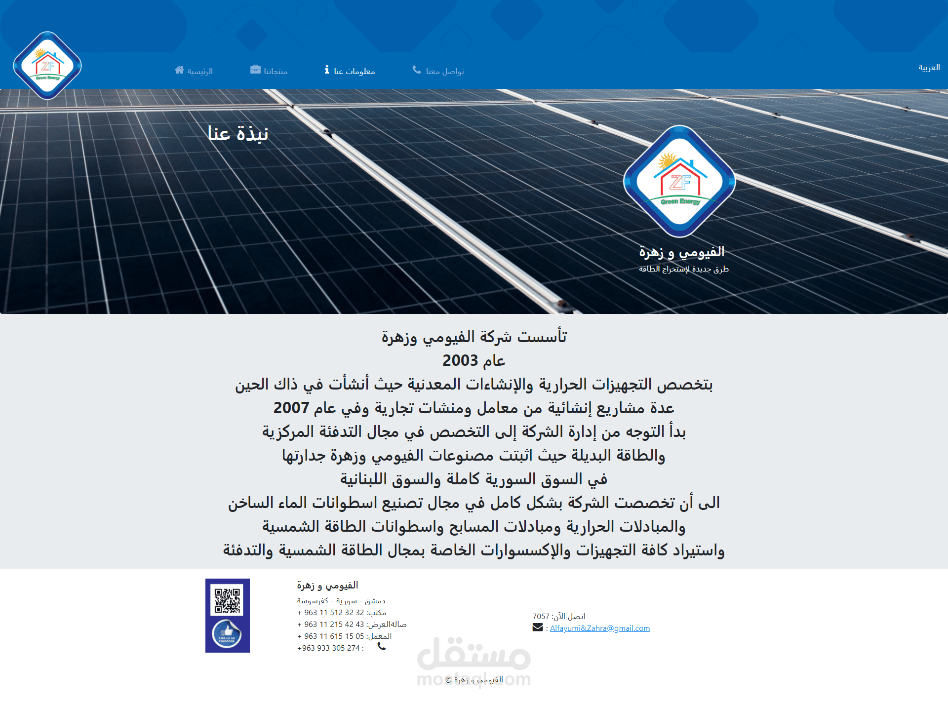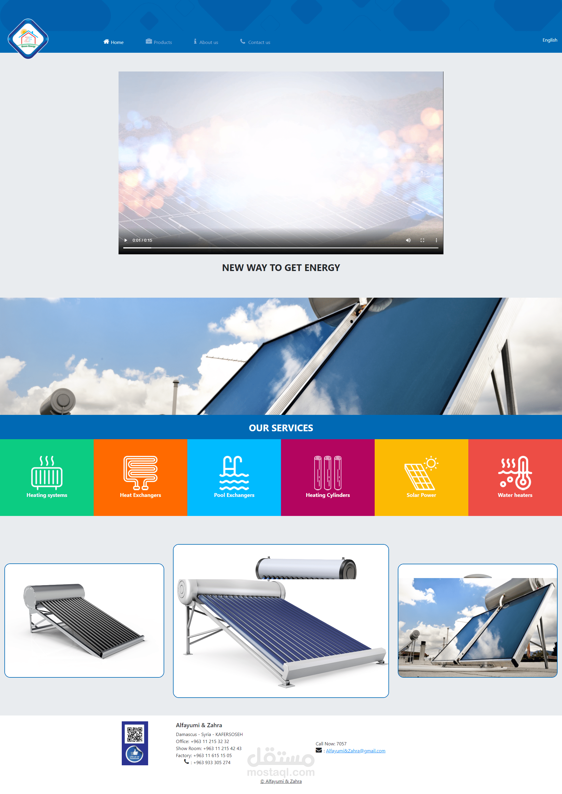 موقع إلكتروني لعرض منتجات شركة مختصة بحلول الطاقة البديلة كتوليد الطاقة والتدفئة