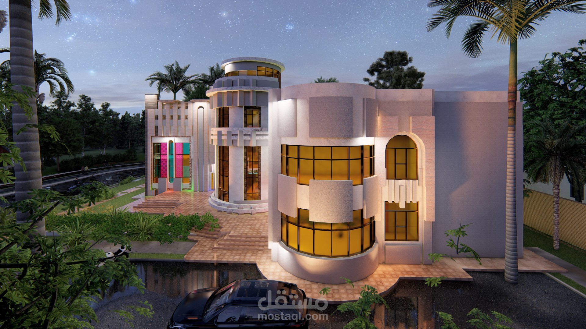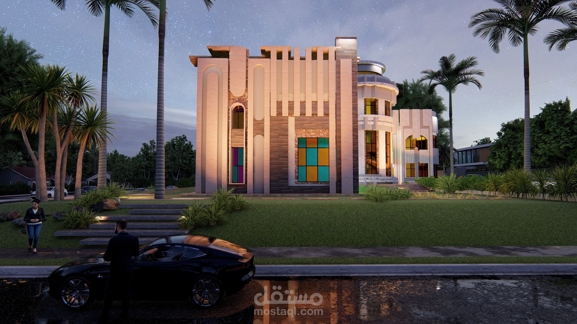 تصميم فيلا طابقين بمساحة 800 متر مربع الموقع أبوظبي .