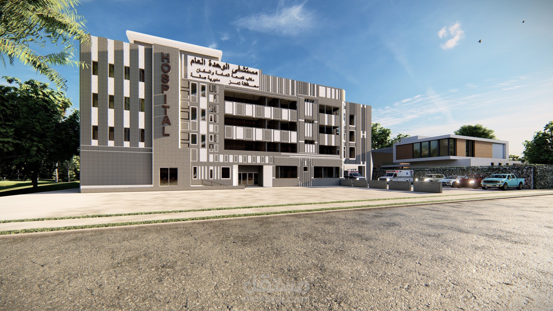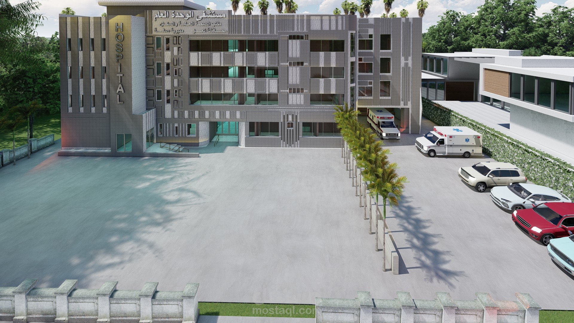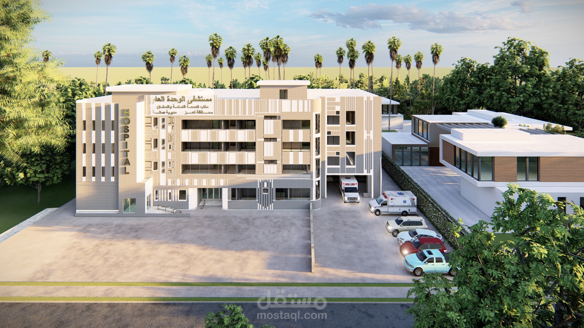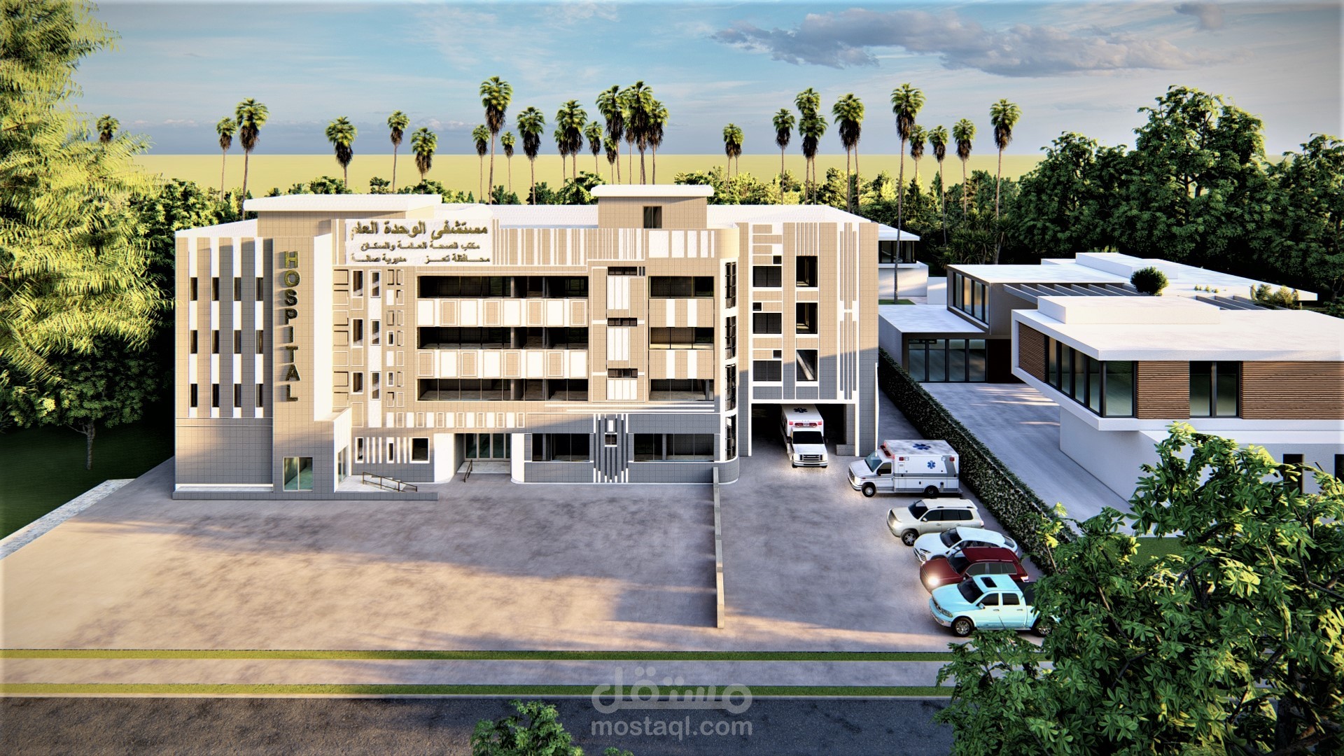 ملحق مستشفى الوحدة في مدينة تعز يتكون الملحق من قسم الطوارئ وقسم العيادات الخارجية وبنك الدم والمختبر المركزي وقسم الرقود والعناية المركزة .