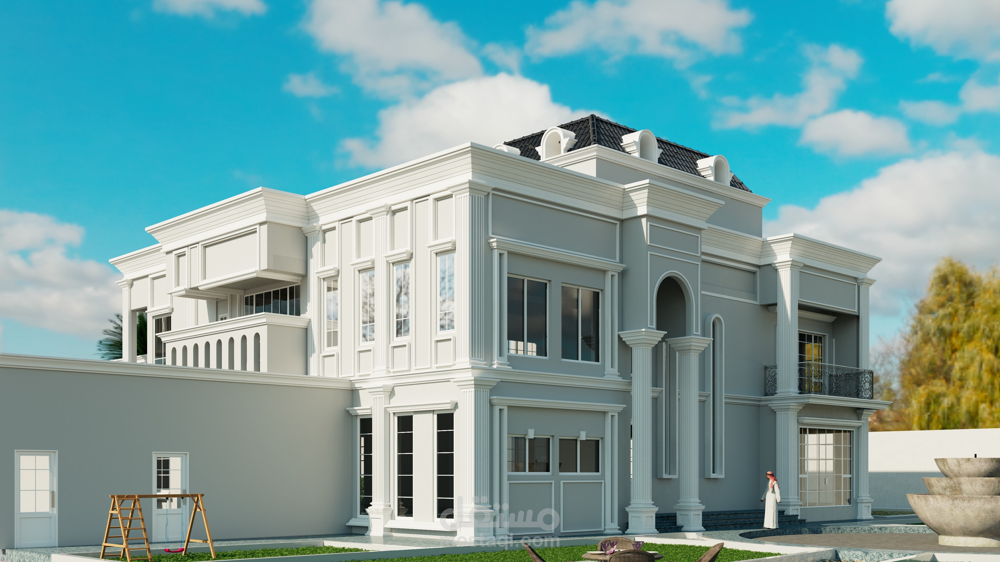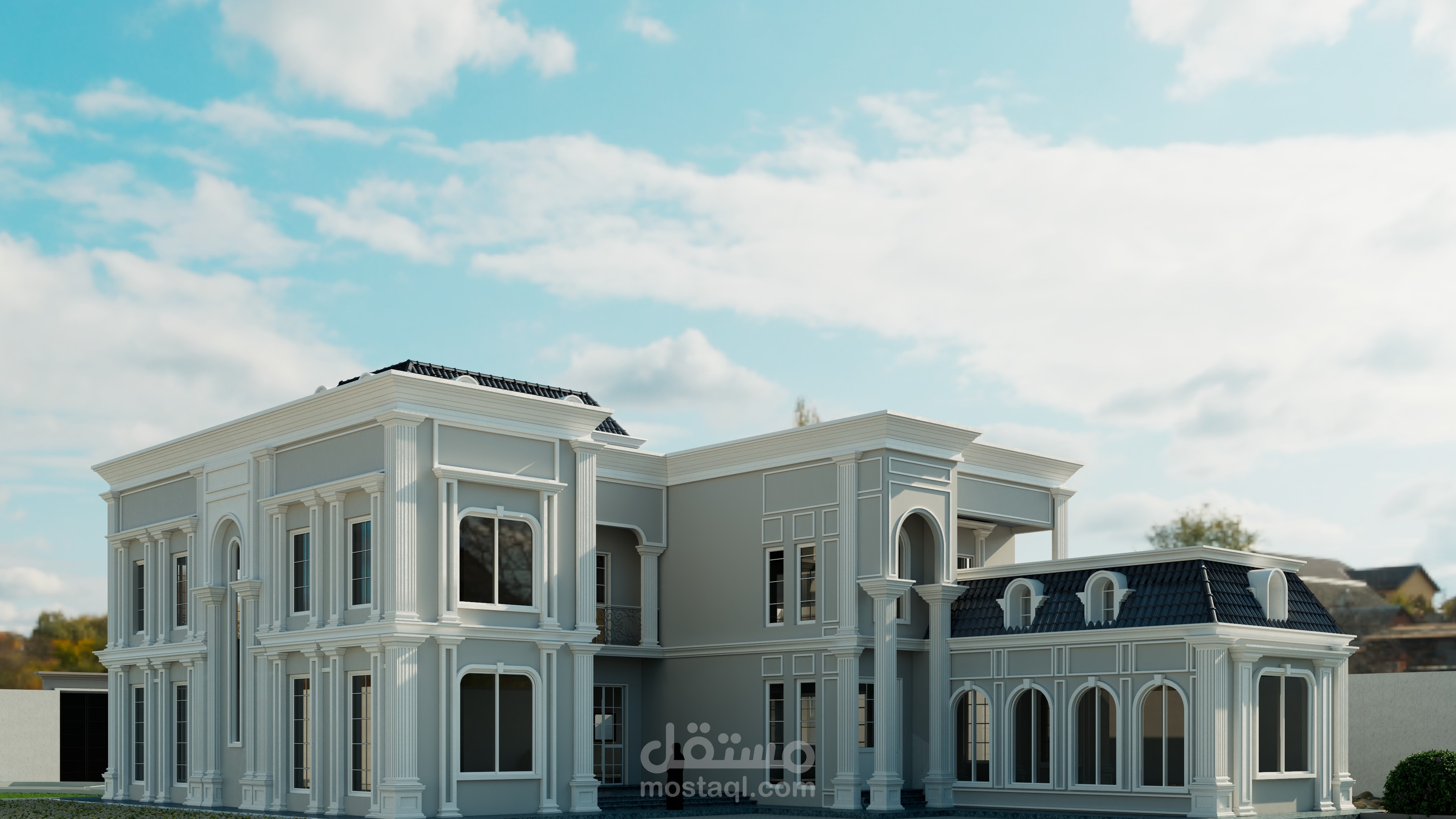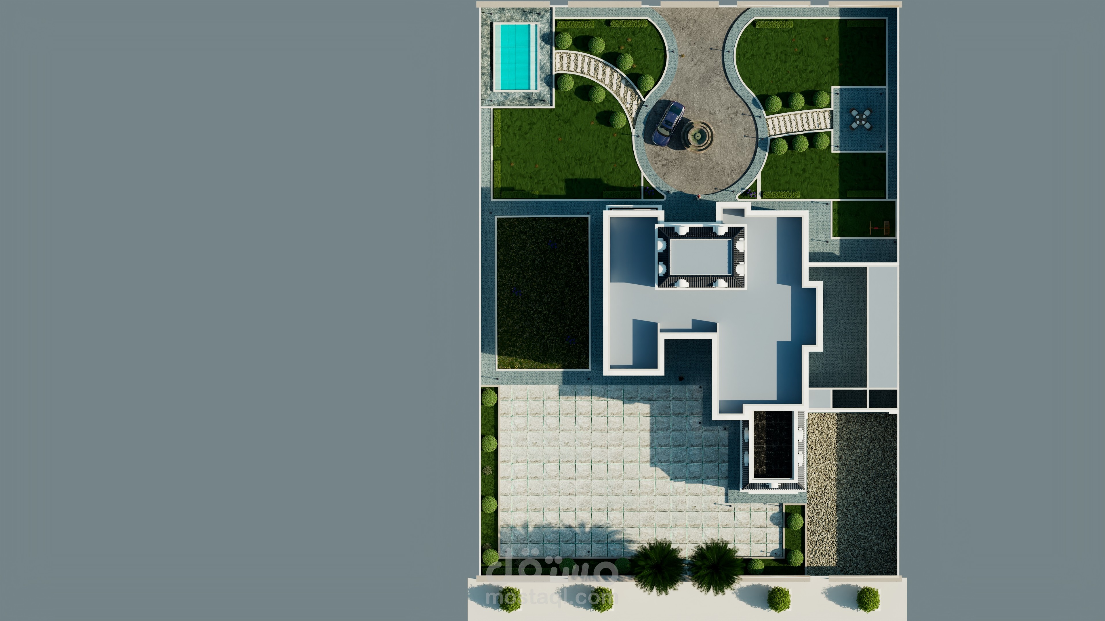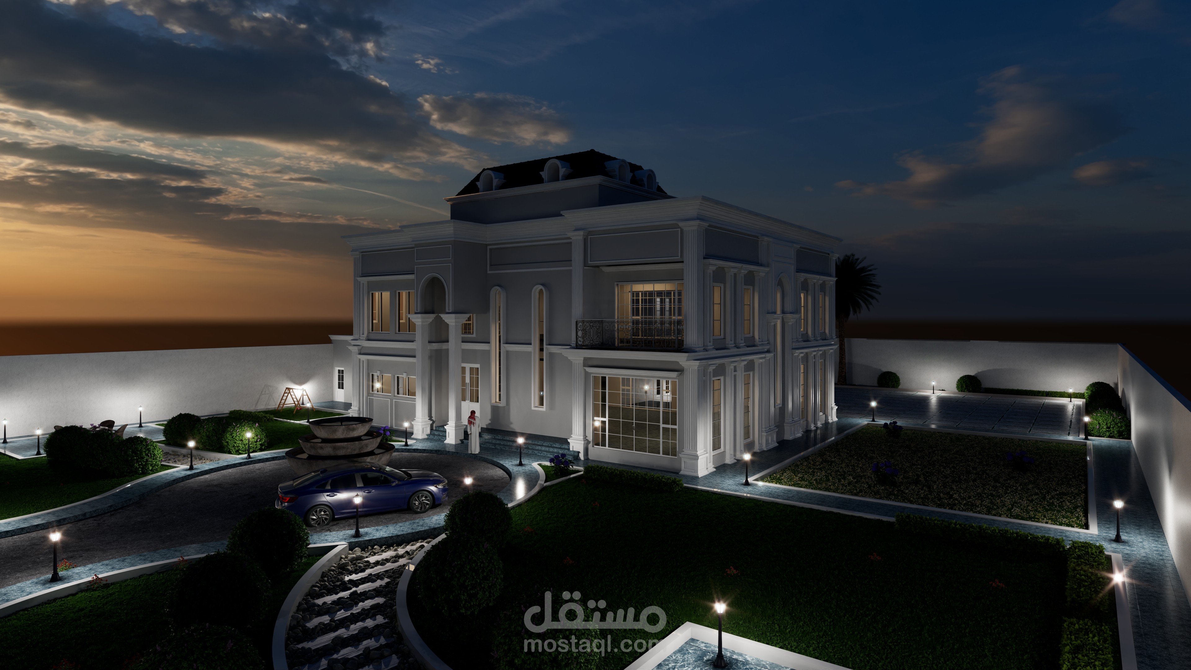 قمت بعمل الثرى دى للمخطط فيلا وتصميم الاضاءه وتوزيعها باستخدام برنامج الثرى دى ماكس والكاد والفوتو شوب