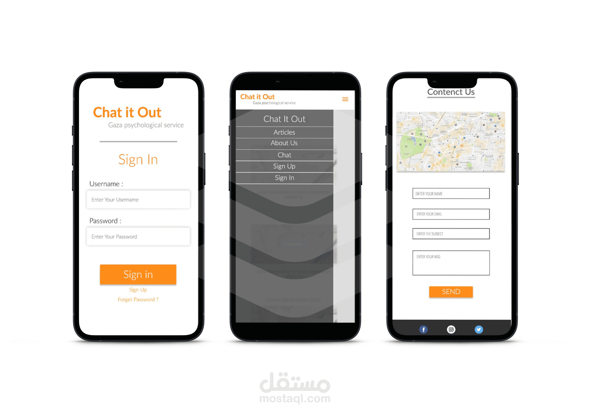 The website targets people with psychology concerns and issues , who live in Gaza , The website offers a selection of psychological articles on a myriad of mental issues in a simple language for the users to browse ,However , the main feature that our website offers lies in the chat between the user and the psychologist where the psychologist doesn't necessary and to know the identity of the user.