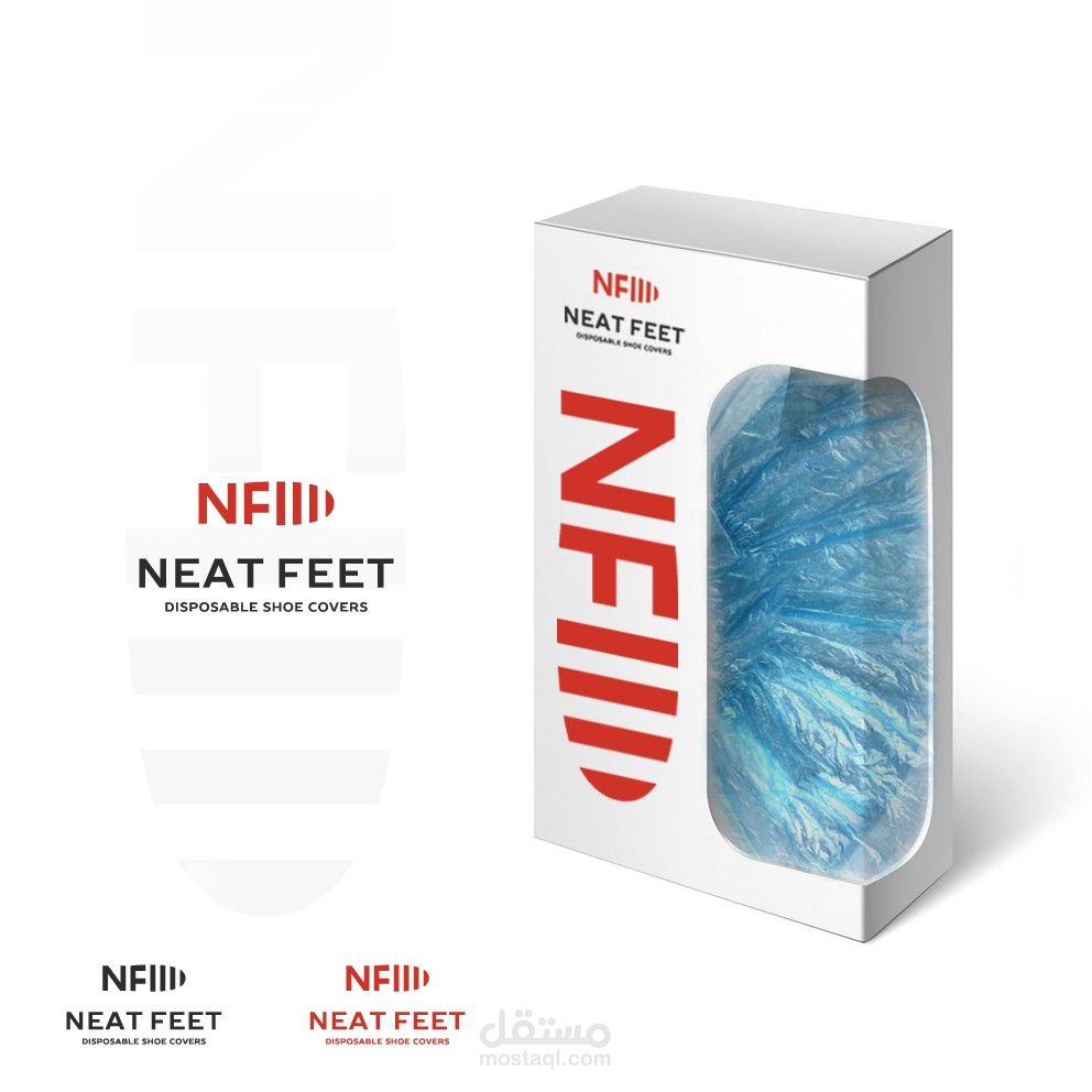 تصميم شعار "Neat Feet" وهى شركة مختصة بتصنيع أكياس أحذية الأرجل وقد قمت بعمل الشعتر فعليا من فكرة الحذاء مع دمج احرف الشعار معا. ايضا قمت بتصميم العبوة الخاصة بحفظ المنتج