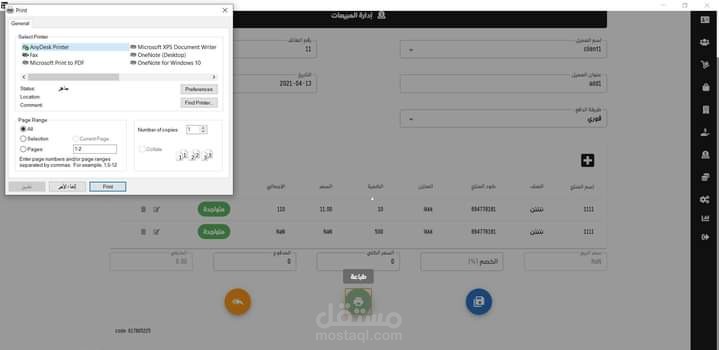دعم جميع انواع الطابعات الحرارية والعادية وصفحة لعرض التقارير كاملة