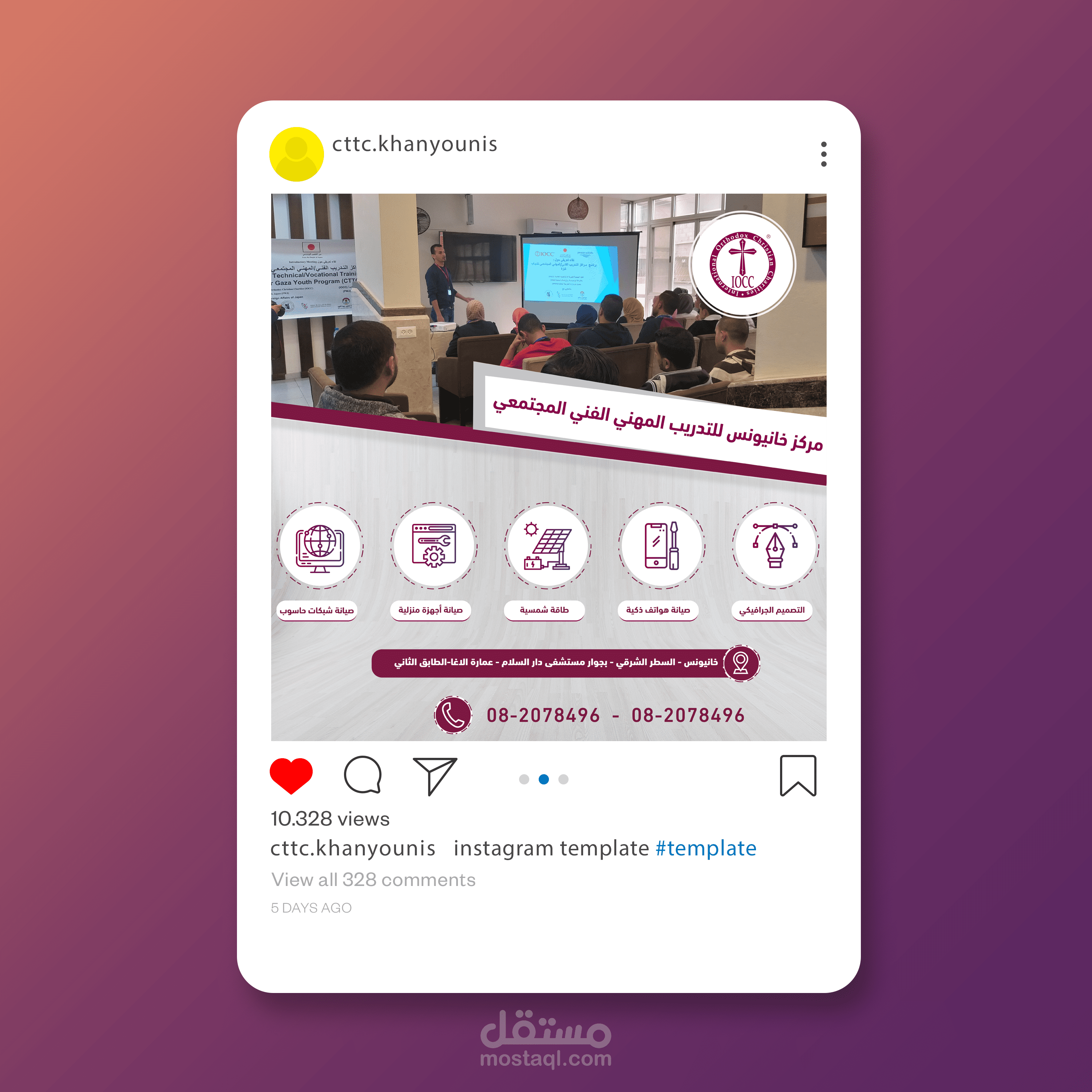 منشور سوشيل ميديا لمركز خانيونس للتدريب الفني والمهني المجتمعي يقدم خدماته في مجال التدريب المهني