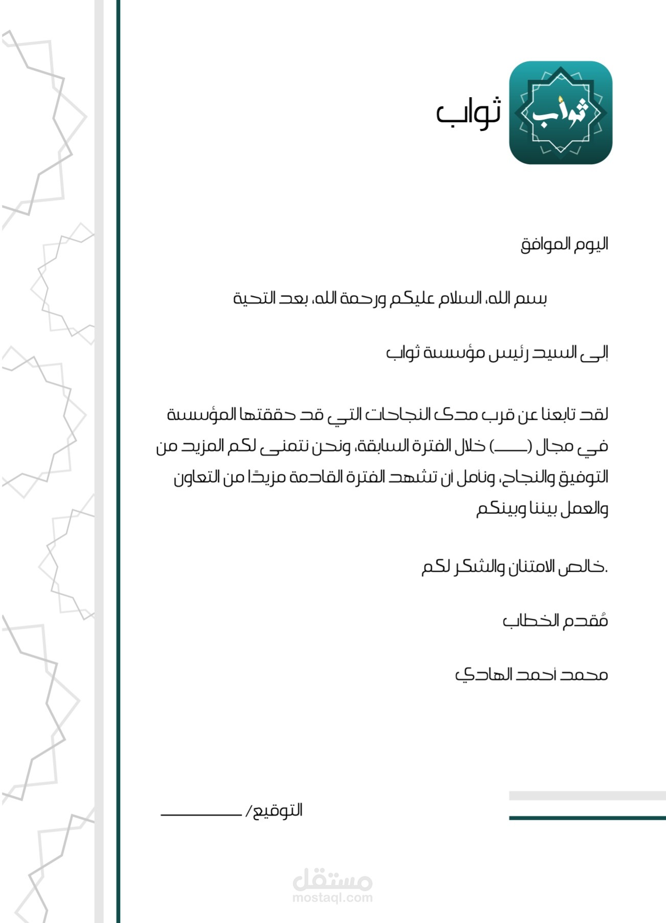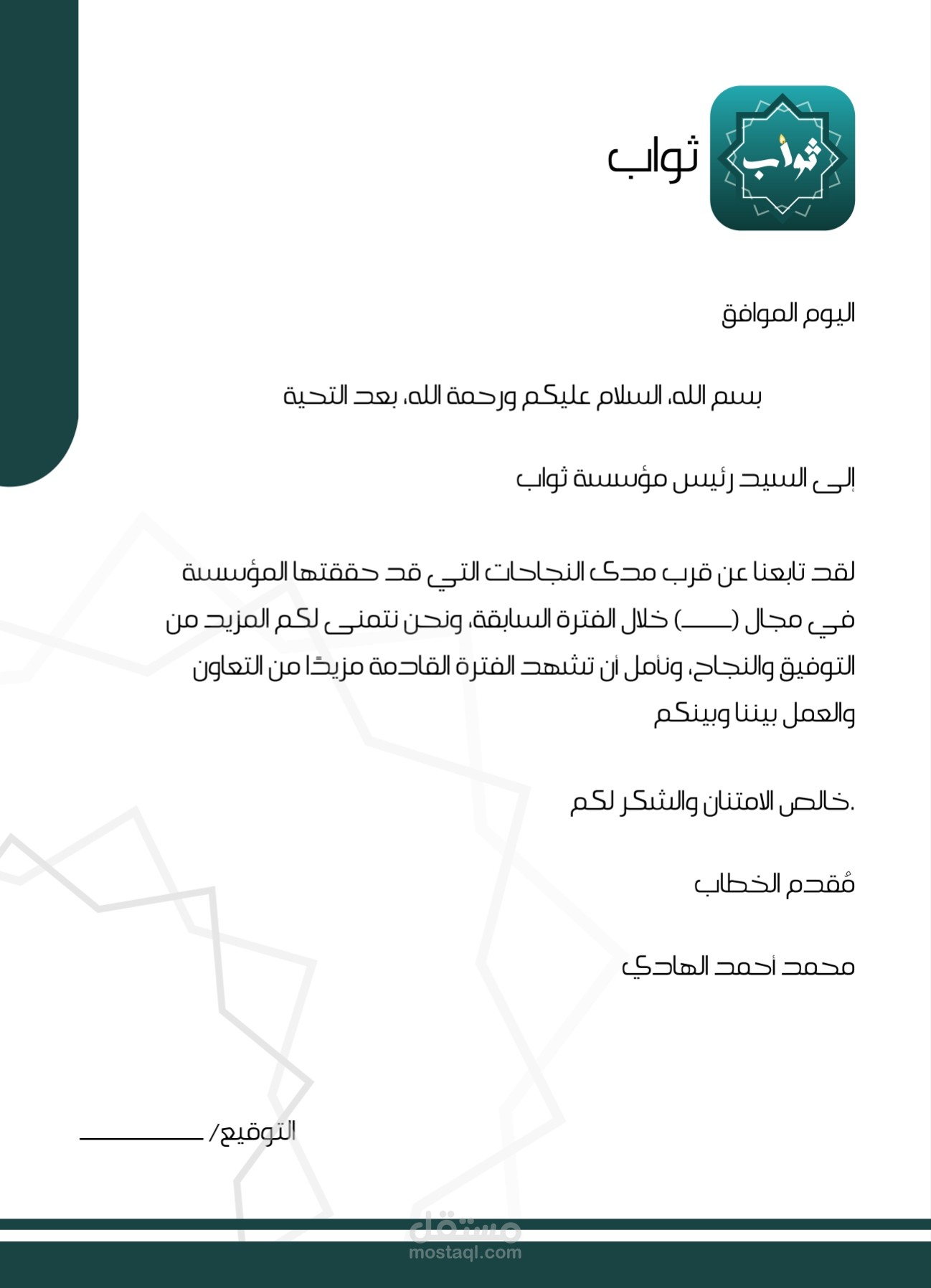 طلبت مني شركة ثواب تصميم هوية بصرية للشركة