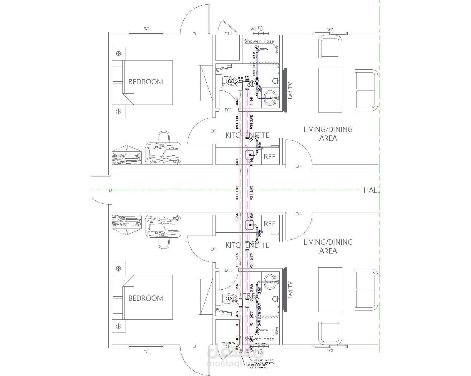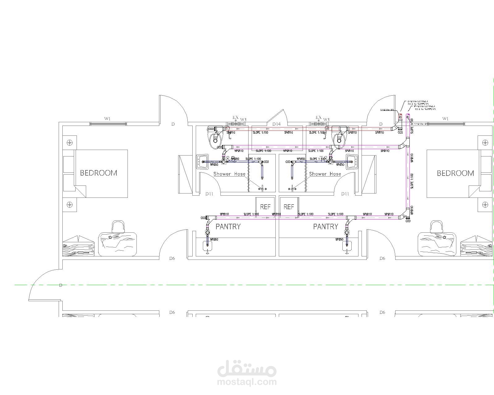 تصميم مخططات الصرف الصحي لمشروع يتكون من 120 مبنى عمل الحسابات المناسبة بالاعتماد على كود البناء السعودي و الكود العالمي للأعمال الصحية .
