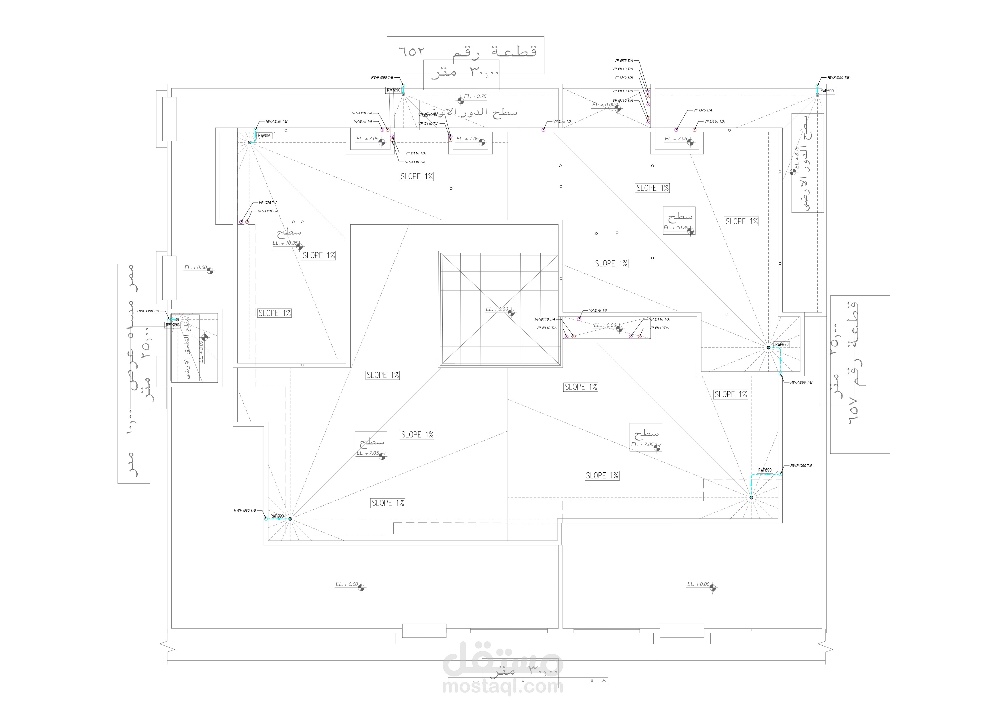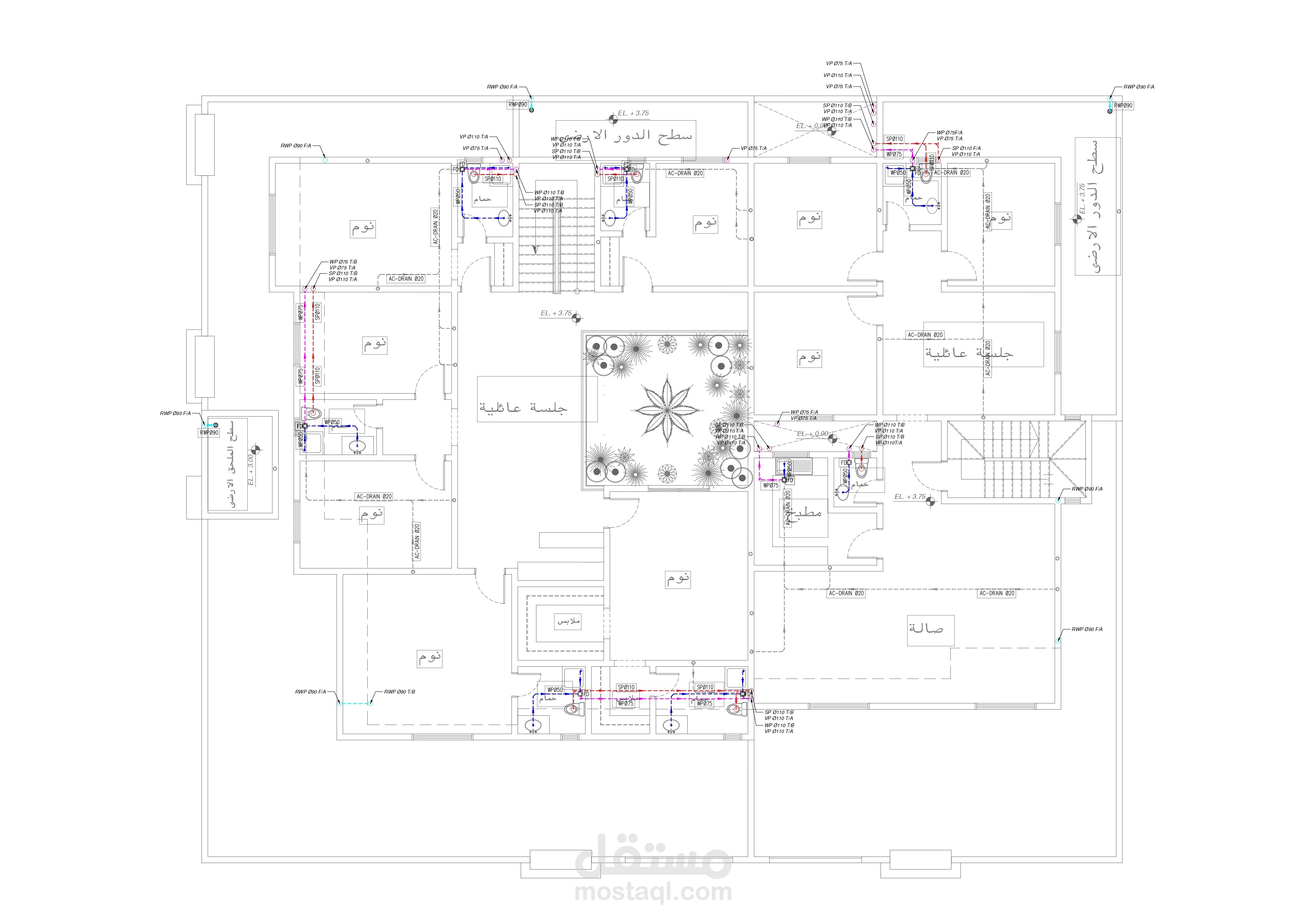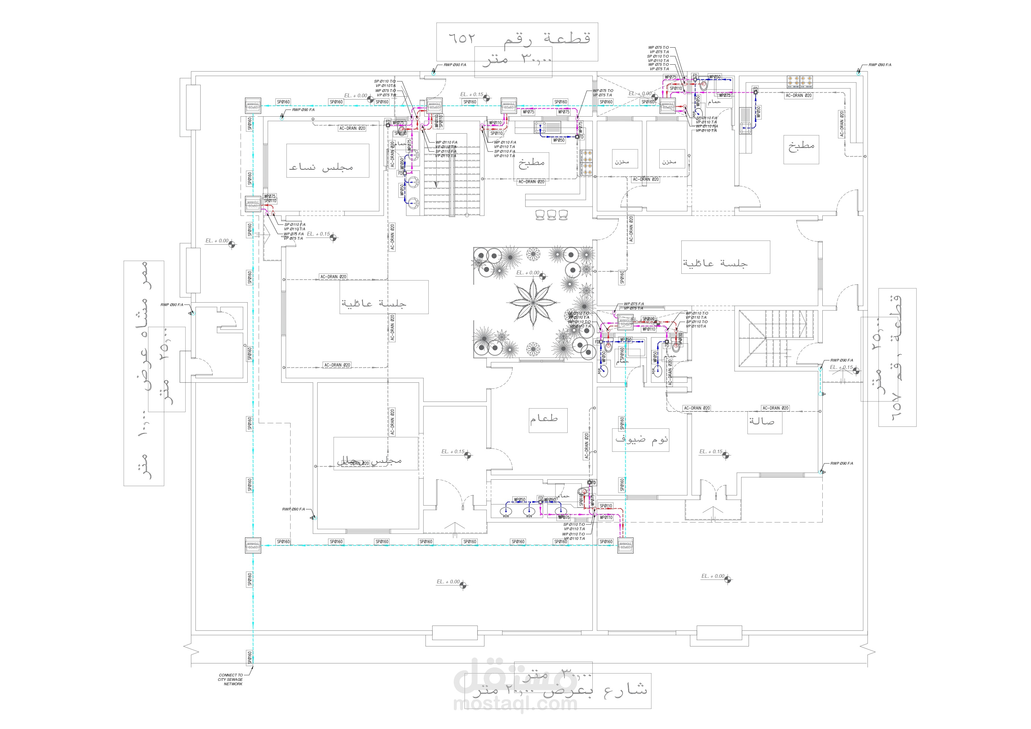 تصميم مخططات الصرف الصحي لفيلا سكنية في الرياض باستخدام برنامج الأوتوكاد واعتمادا على الكود السعودي للبناء والكود العالمي للأعمال الصحية .