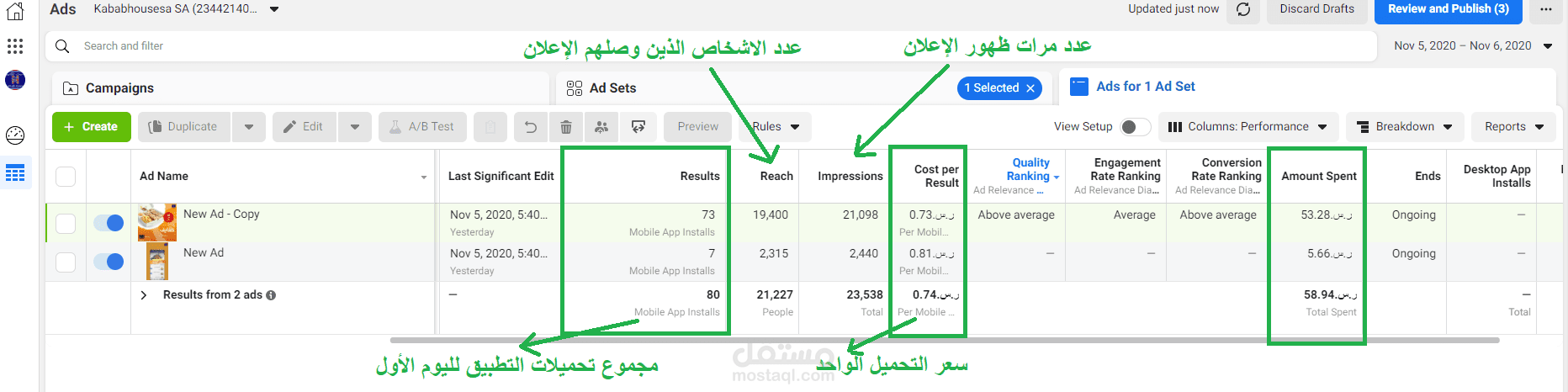 رفع عدد تحميلات التطبيق عبر App Install Campaign وتحسين الحملة الإعلانية لـ 0.7 ريال سعر التحميل الواحد للتطبيق