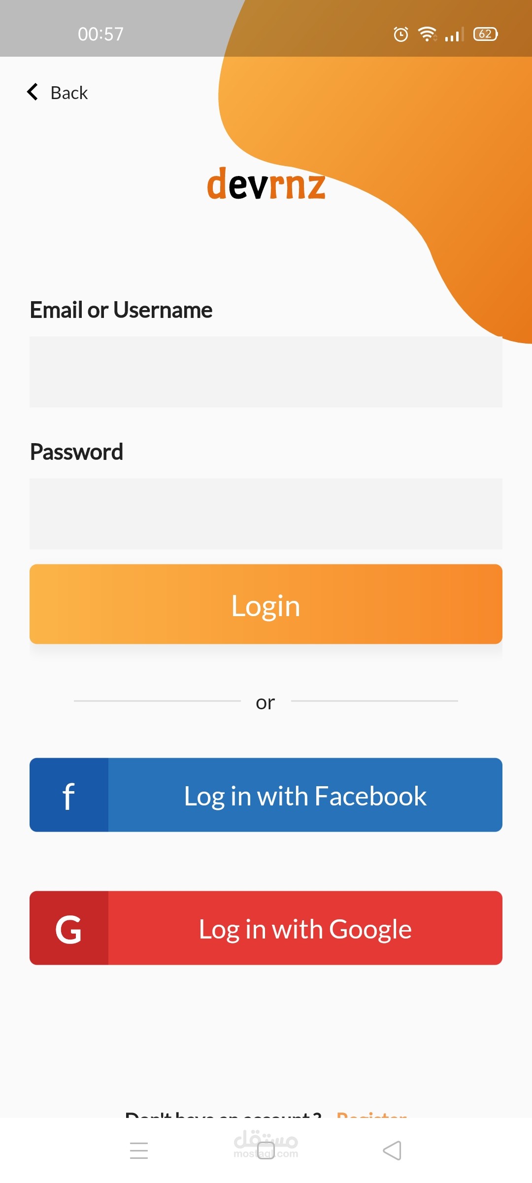 - شاشة تسجيل دخول و تسجيل