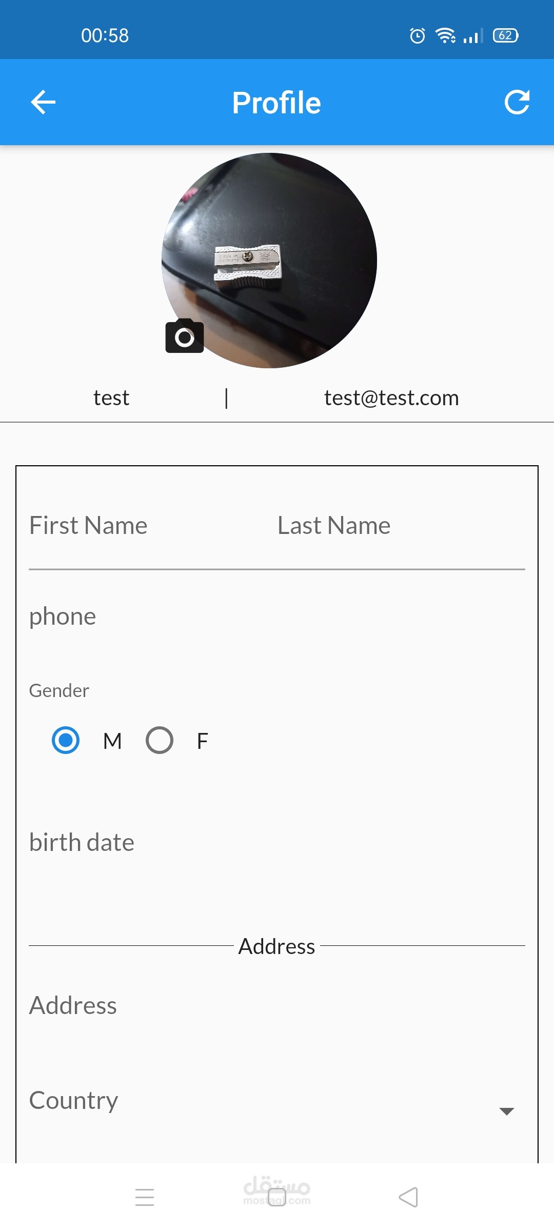 - شاشة تعديل بيانات المستخدم