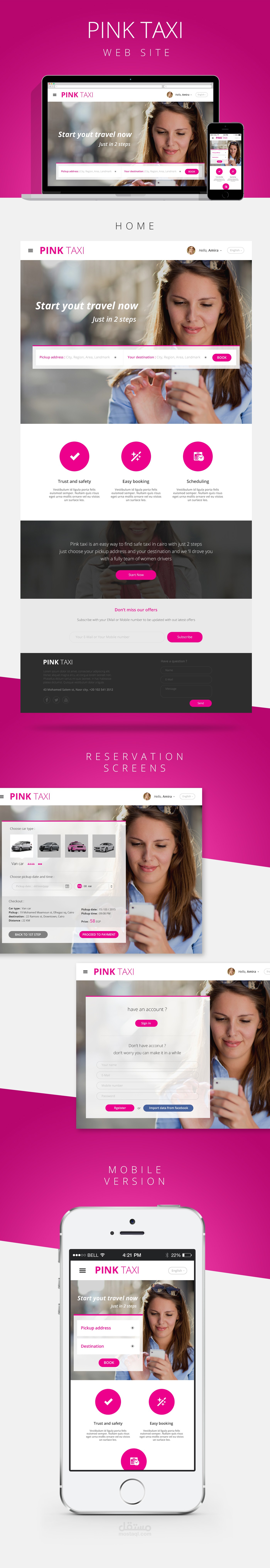 Pink Taxi website UI design, where clients can order a taxi using it.