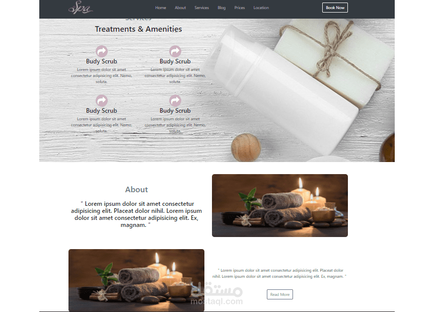 صفحه رئيسيه لموقع الكتروني لمركز تجميل يخدم مميزات المركز ف هو متجاوب مع جميع الشاشات سواء موبايل او ويب