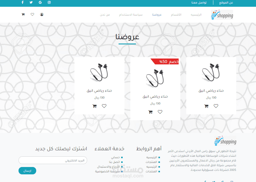 موقع الكتروني تجاري كامل لعرض وبيع المنتجات ..يحتوي علي العديد من الصفحات التي تخدم الغرض الاساسي وهو ايضا مطور ليكون متجاوب مع كل الشاشات
