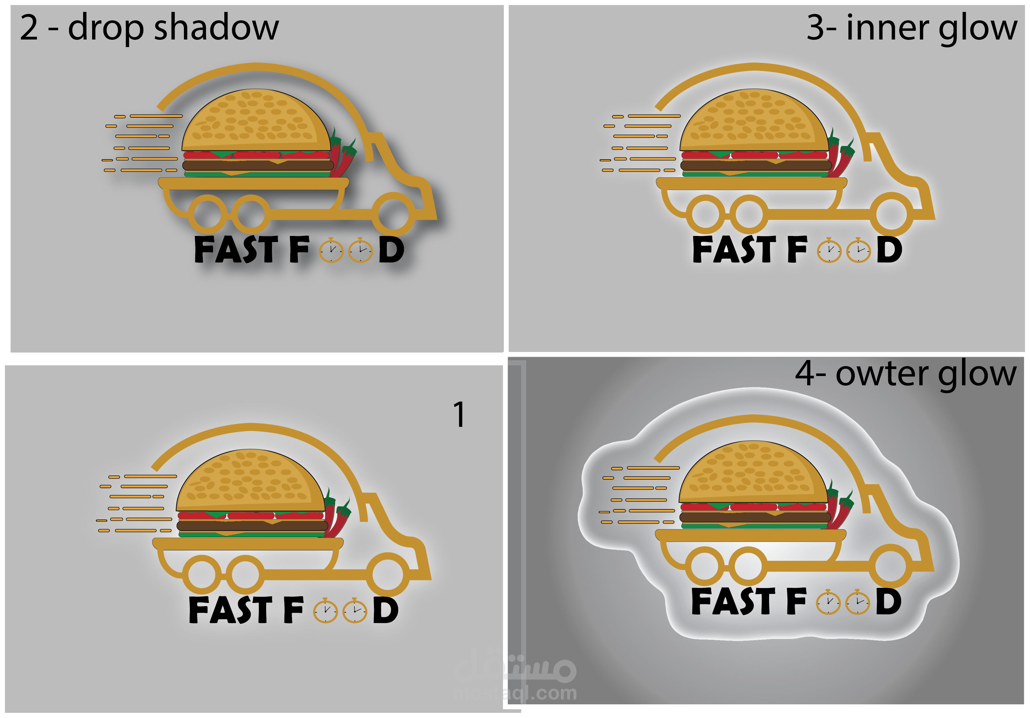 بدأ هذا العمل او المشروع بمجرد الفكره المقسمه الى سياره على شكل sandwich ثم الفكير وتنسيق الالوان واختيار طريقه كتابه كلمة fast food والايحاء المناسب بأستحدام stop watch ثم النايه ببساطة التنفيذ