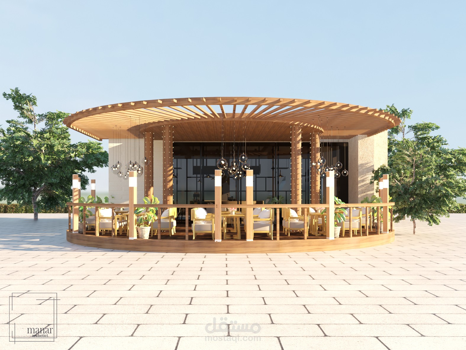 تصميم خارجي لكافيه بالسعودية باظهار نهاري
