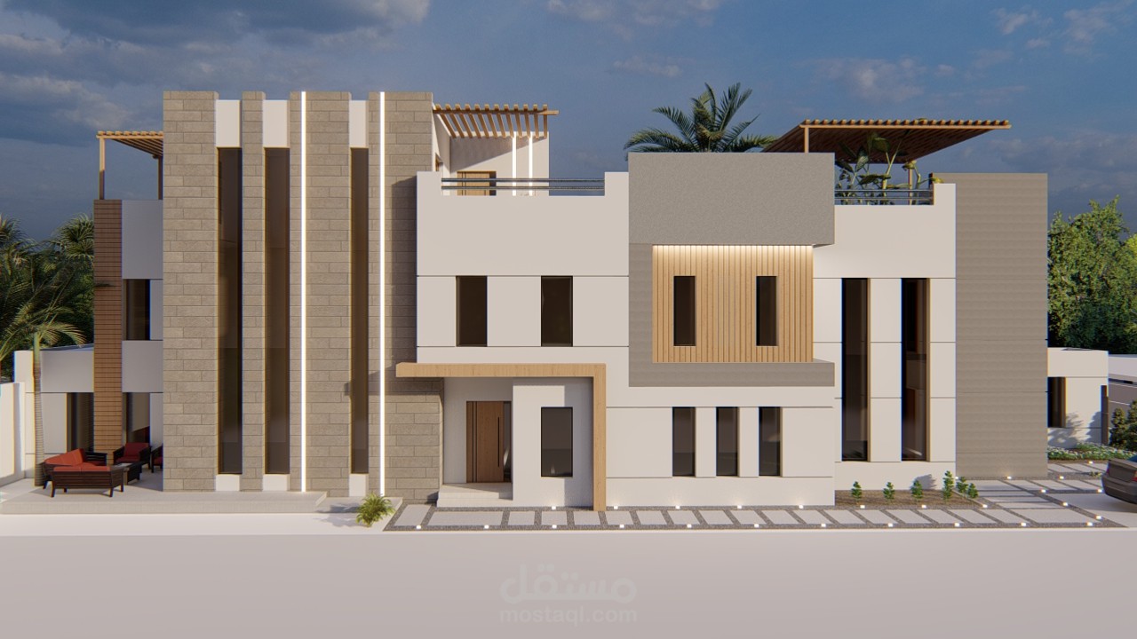 تصميم الواجهة الرئيسية للفيلا المهارات -تصميم البيت -تصميم مخططات - تصيم مساقط