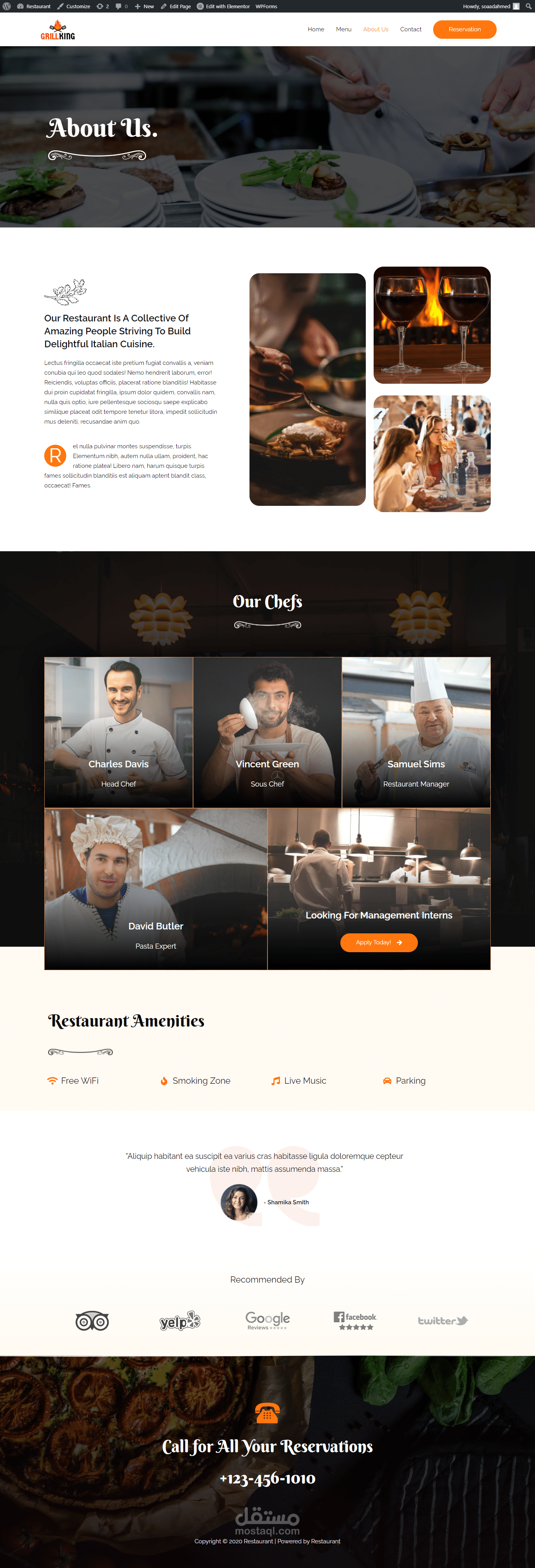 موقع وردبريس  لمطعم باستخدام elementor and elememtor pro