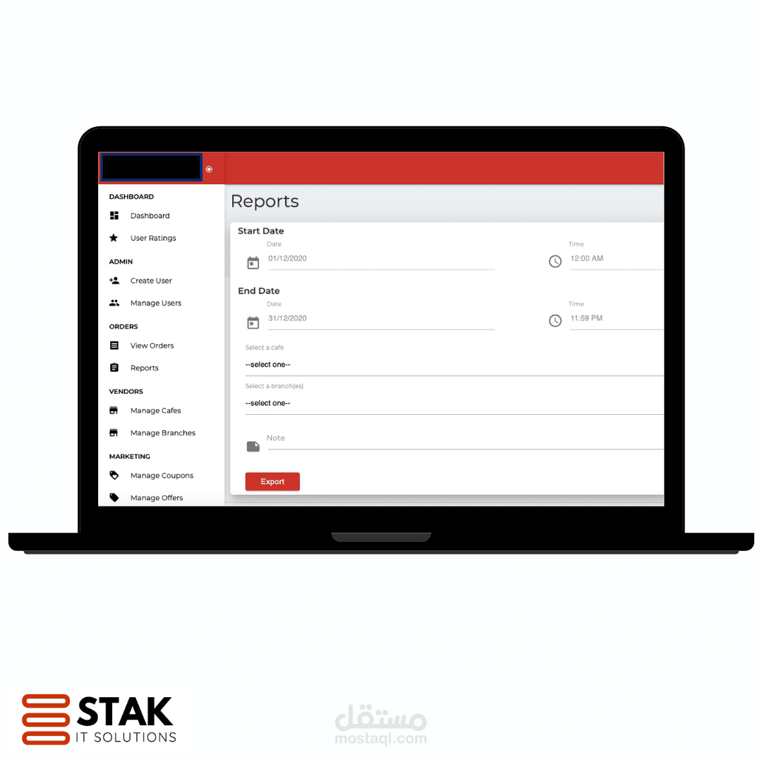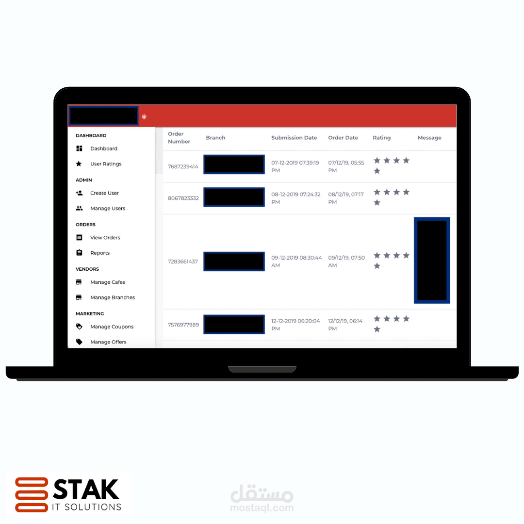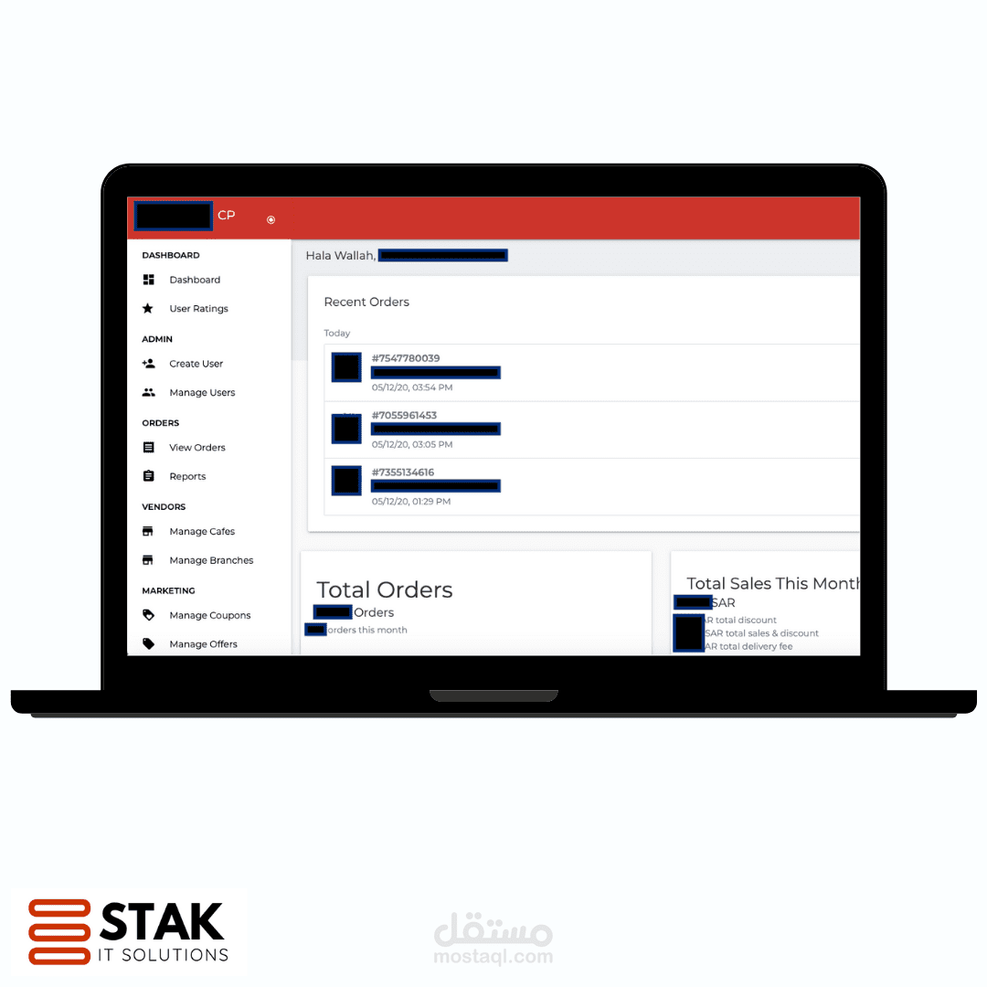 لوحة تحكم لتطبيق توصيل طلبات عملت عليها من الصفر باستخدام لغة PHP و أطار عمل Laravel مع استخدام Firebase.