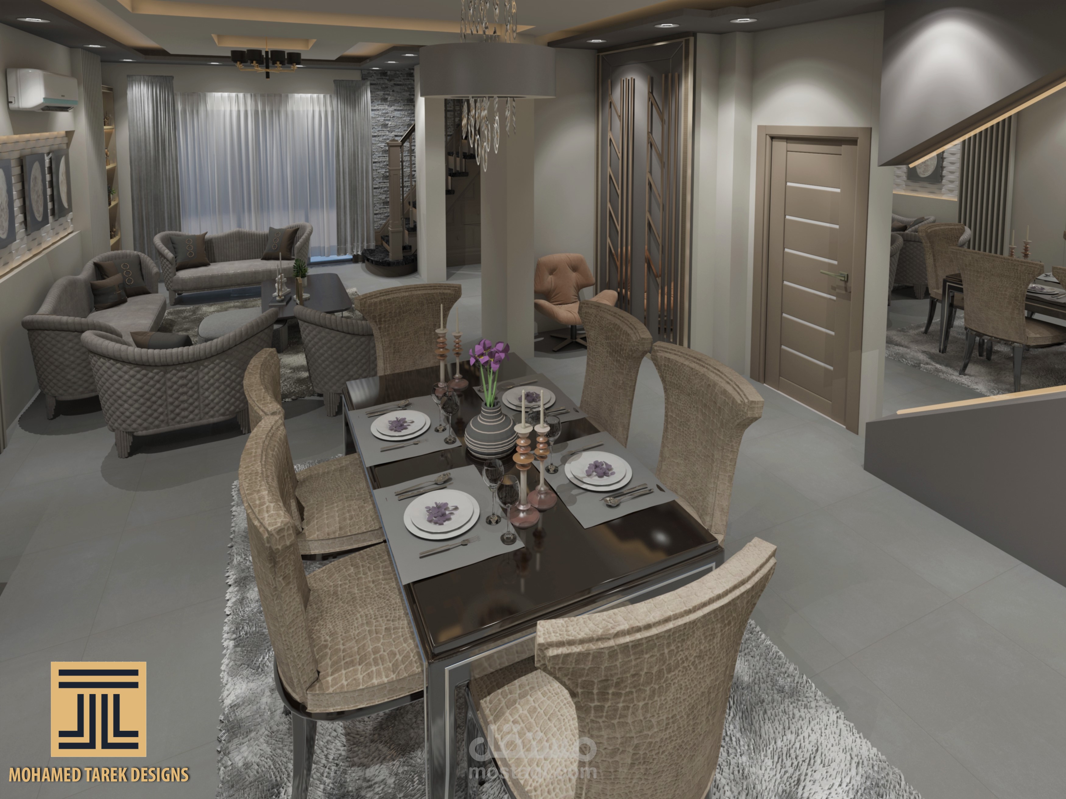 تصميم مودرن لصالة منزل بمصر تم العمل على دمج عملية التصميم مع رقي الذوق و تناسق الألوان مع رغبة العميل