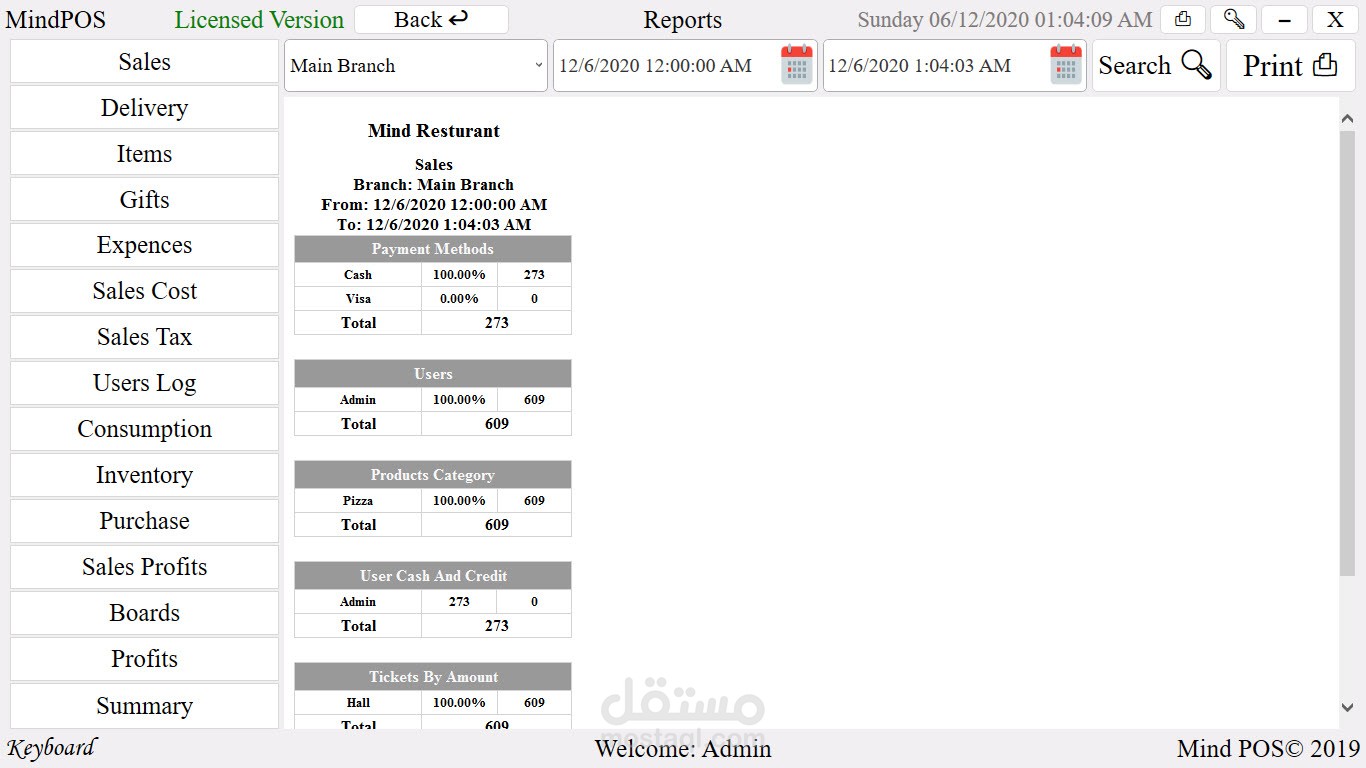 برنامج ادارة مطاعم وكافيهات متكامل من حيث العمل علي عدة فروع وادارة المخزون الخ...