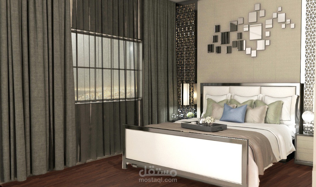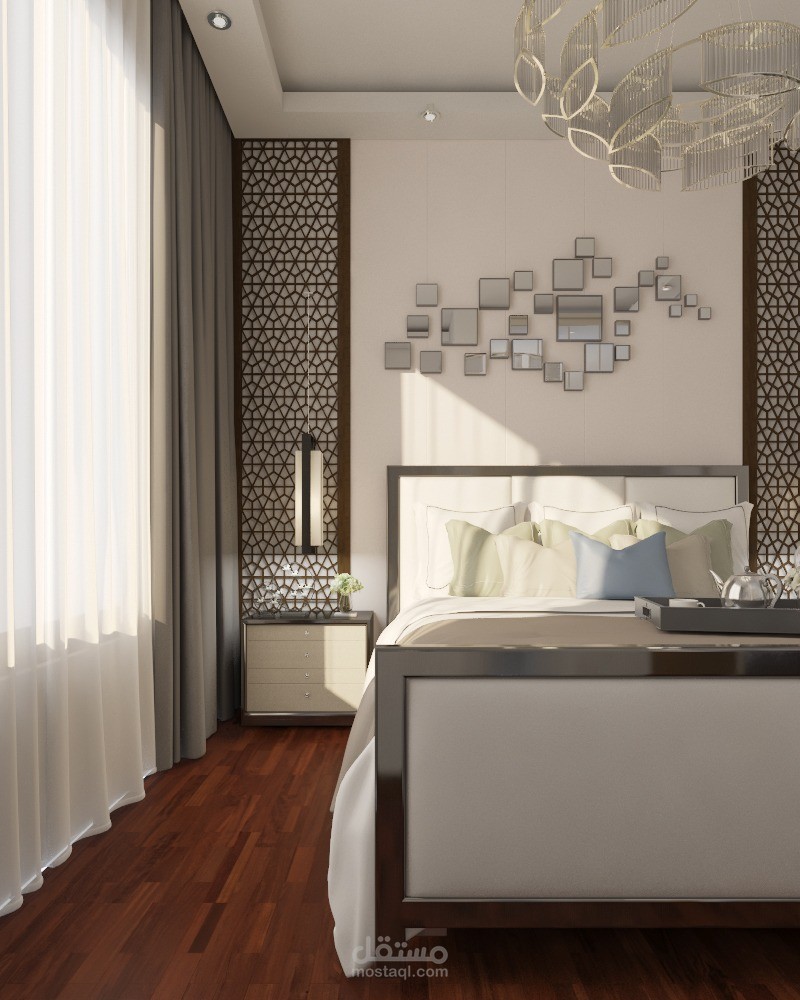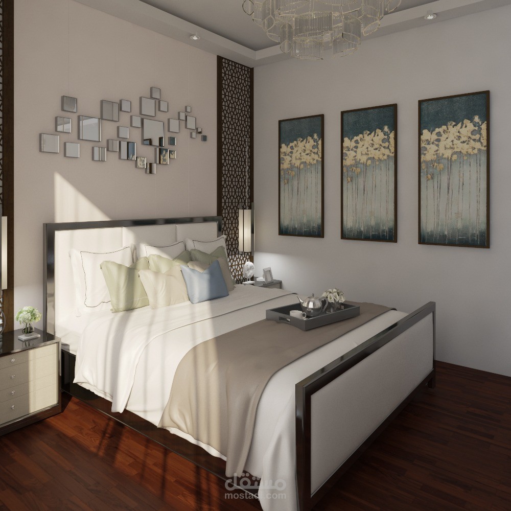 تم انجاز التصميم مع مراعاة الابعاد والراحة الانسانية وتكوين جو مناسب للراحة والهدوء وتم مراعاة تنسيق الالوان لإضفاء جو مريح واستغلال المساحات بأفضل شكل ممكن