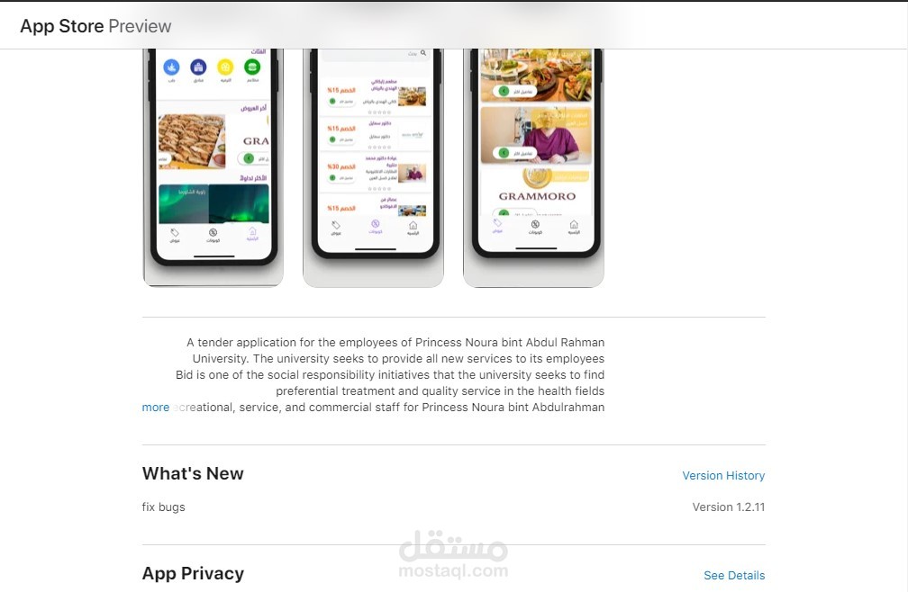 A tender application for the employees of Princess Noura bint Abdul Rahman University. The university seeks to provide all new services to its employees