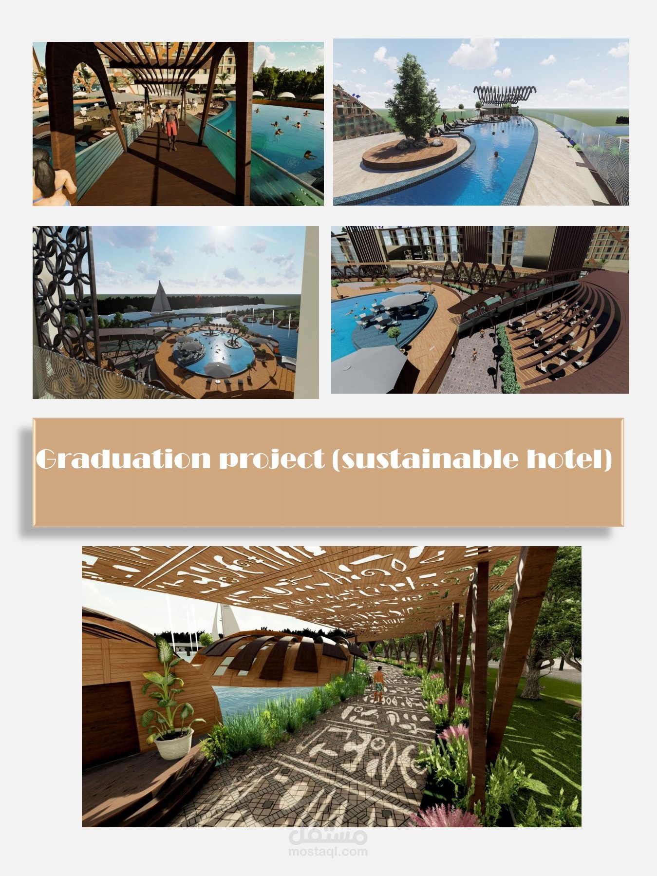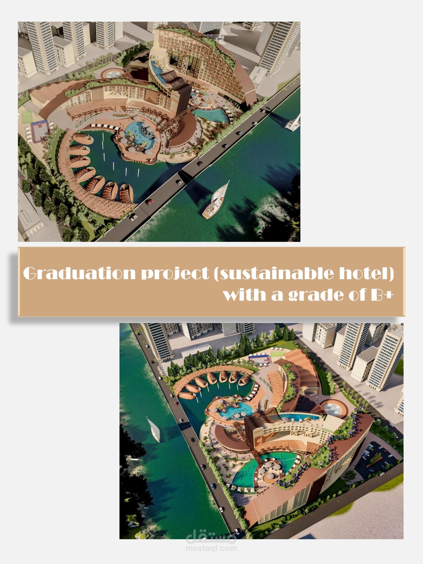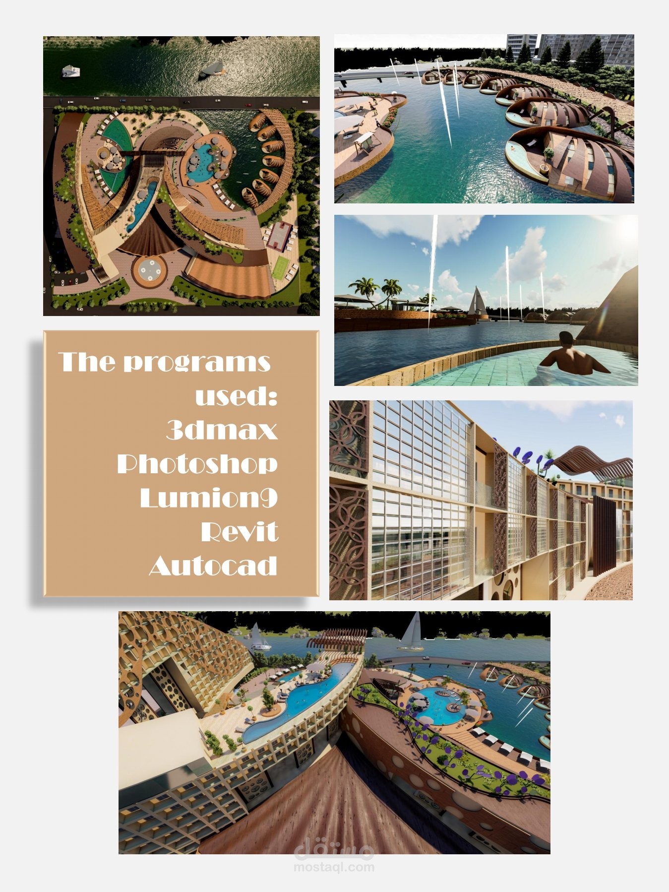 تصميم منتجع سياحي يشمل فندق وشاليهات وبحيره صناعيه علي الطراز الفرعوني