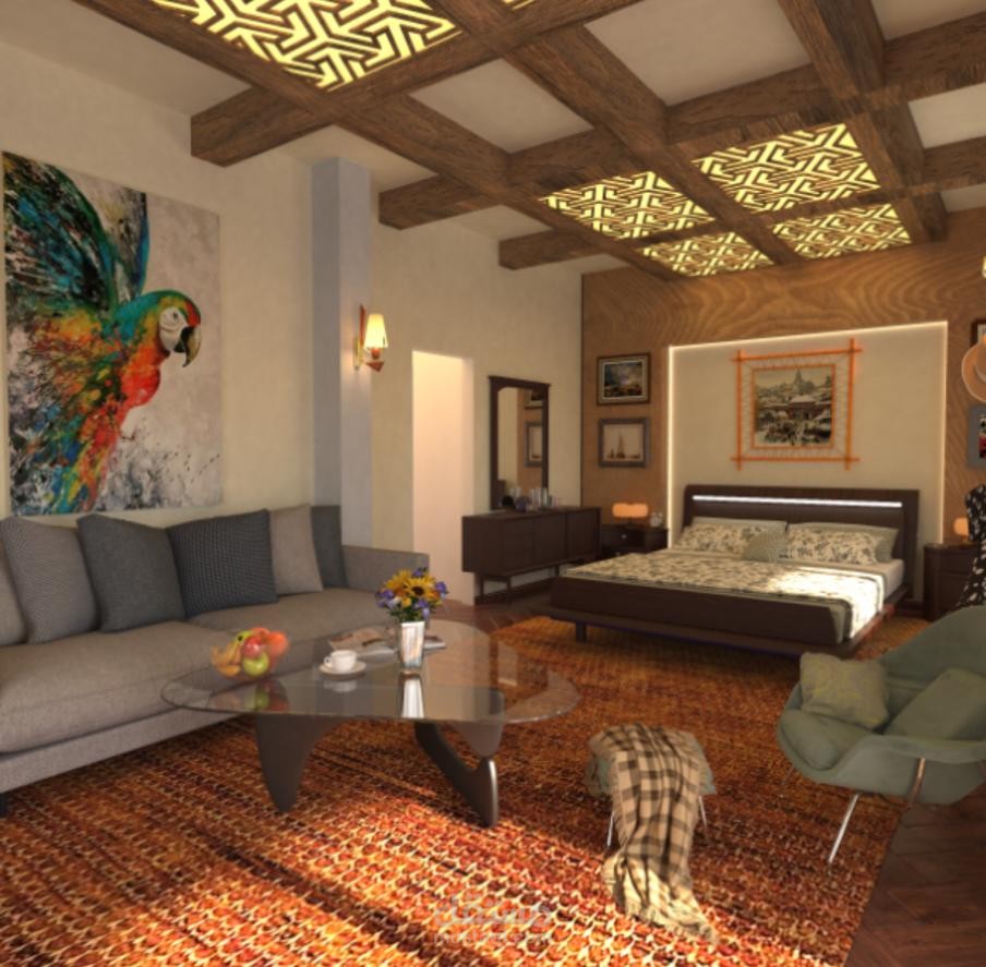 تصميم مودرن باستخدام الخشب والاضاءات الساخنه