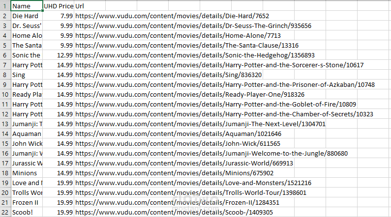 Extracting data for all 4k movies prices with links to the specified movie and sort them from the cheapest to above then collect the data in CSV file