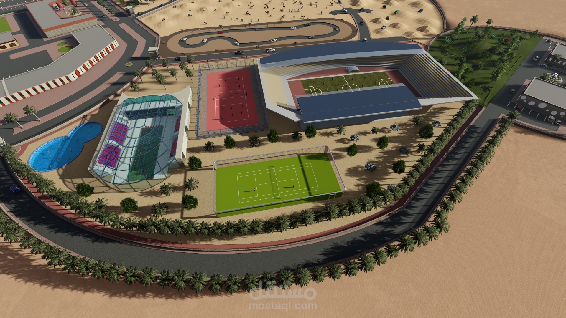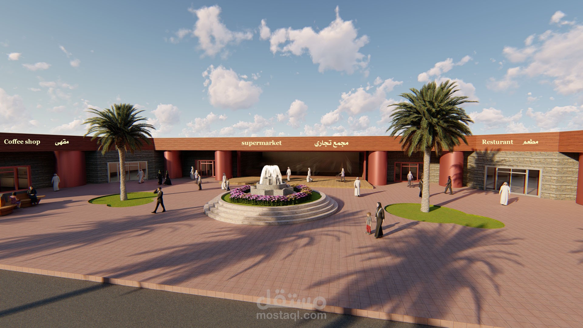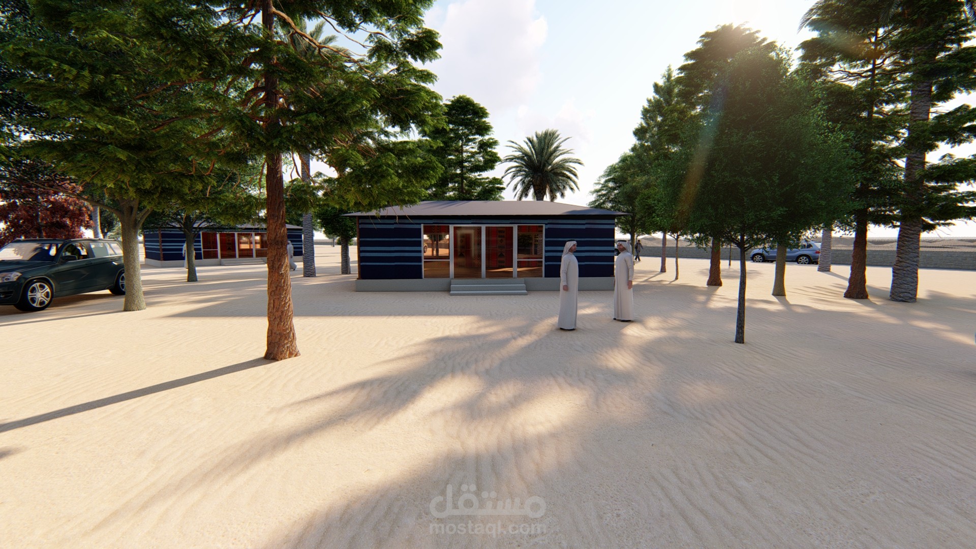 تم تصميم هذا المشروع لاحد عملاء مستقل بعنوان مركب سياحي واحات الرمال يحتوي على :