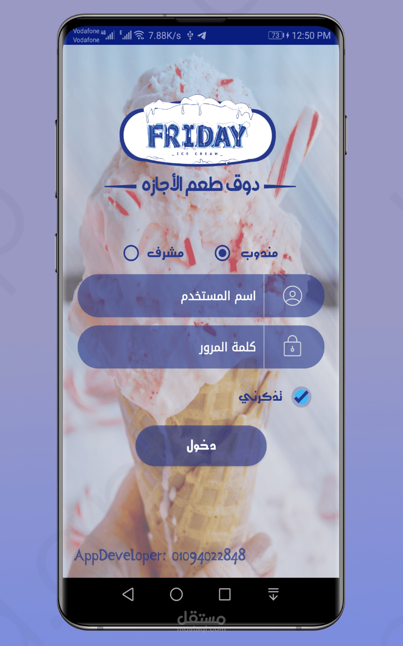 تطبيق خاص بشركة تصنيع الأيس كريم