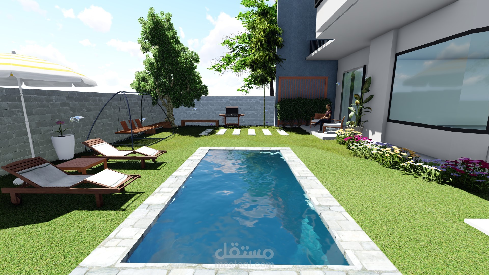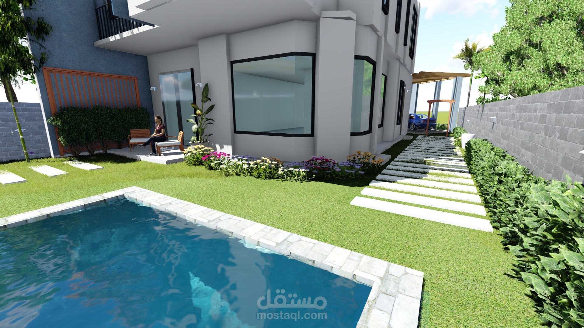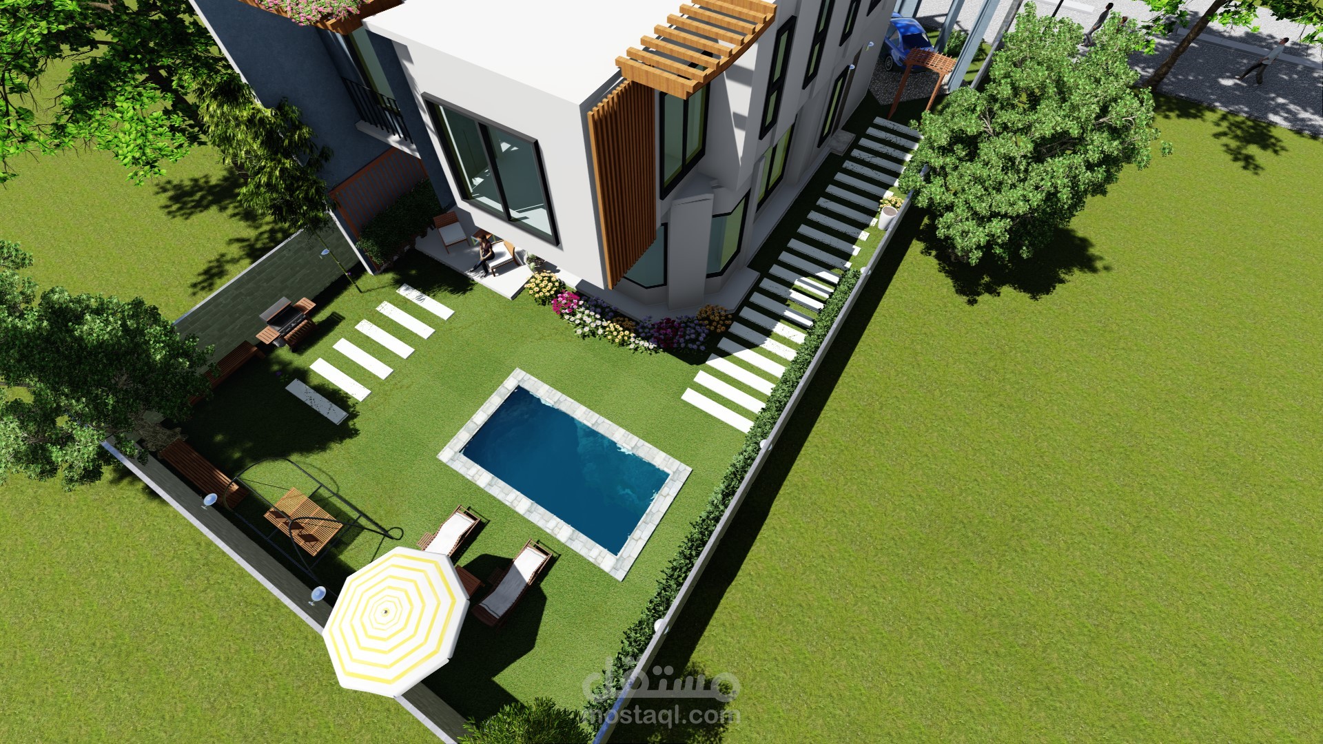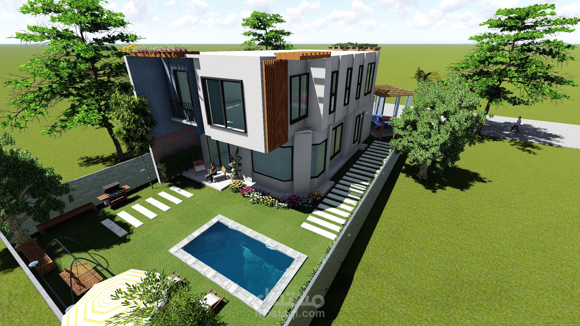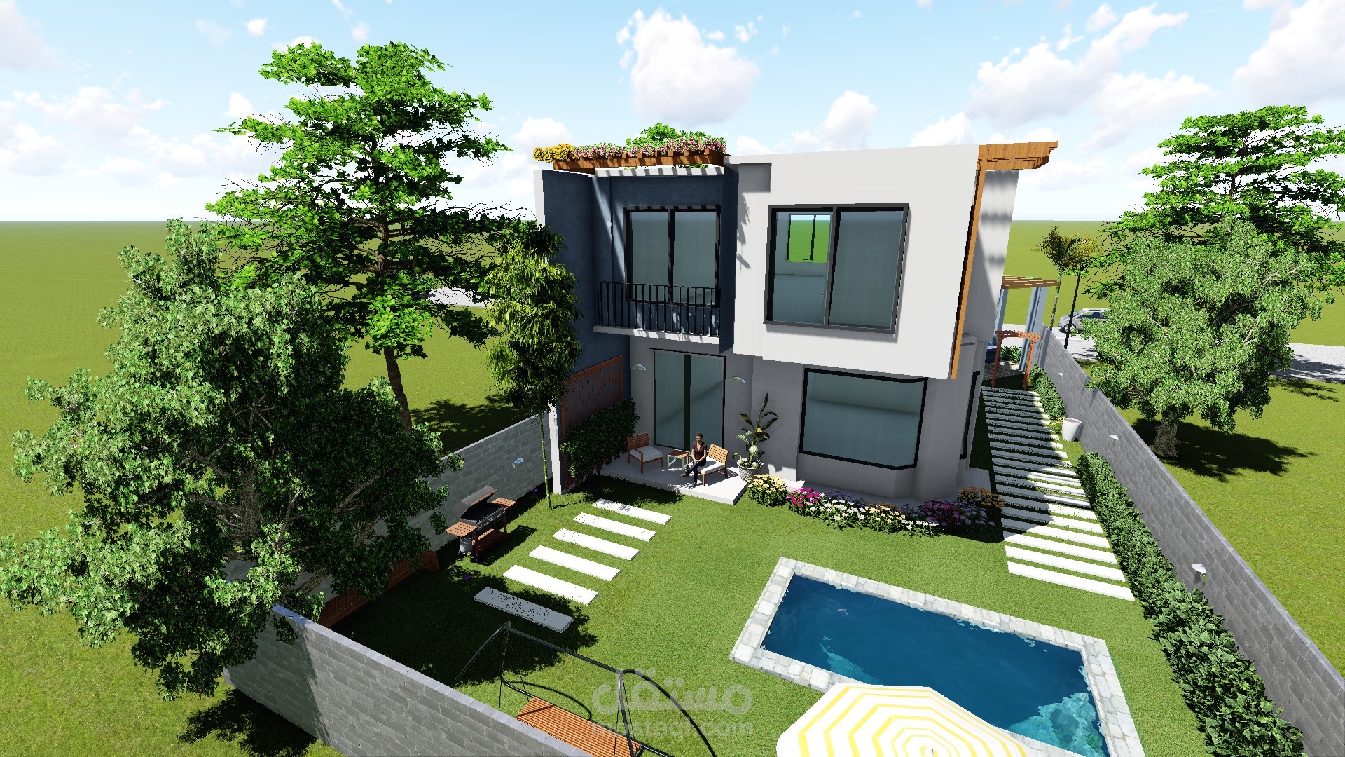 تصميم فيلا مودرن مع حديقة صغيرة