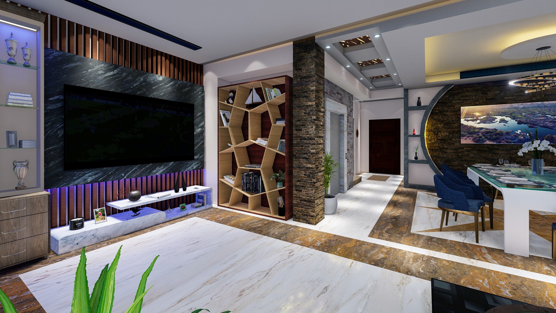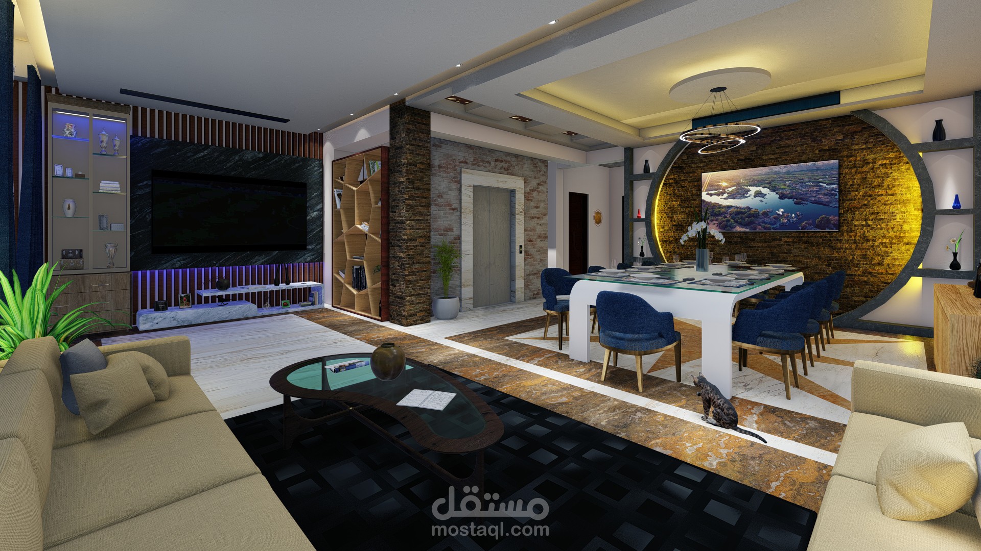 صالة تم تصميمها فى مصر فى مدينة 6 اكتوبر على استايل مودرن