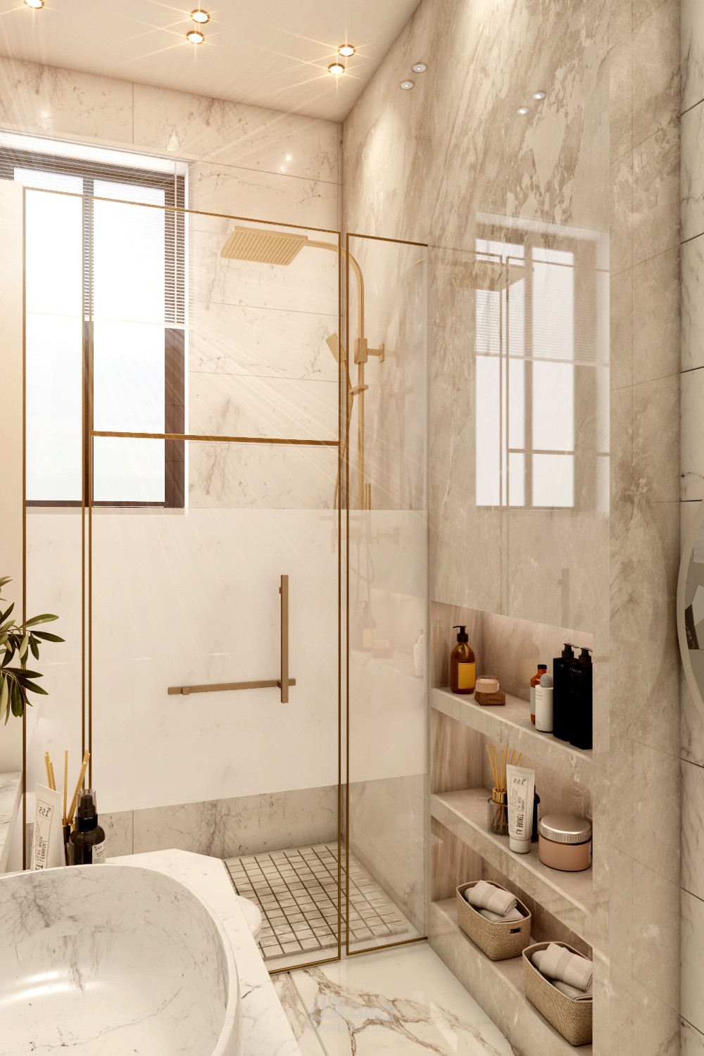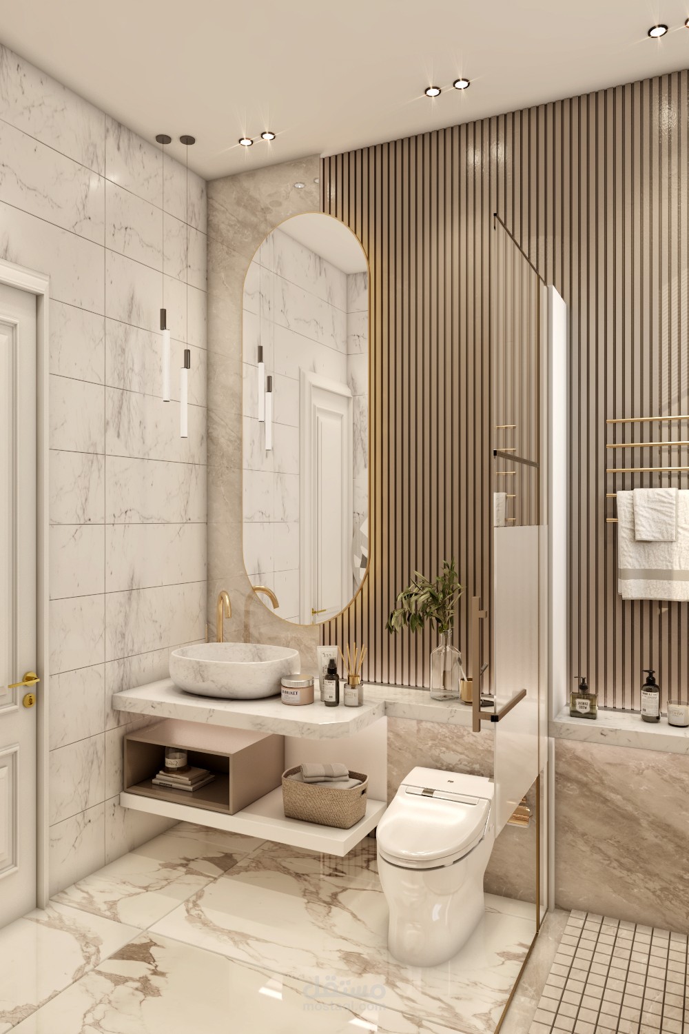 تصميم داخلي لحمام ضمن غرفة نوم على طراز عصري لعميل بالسعودية