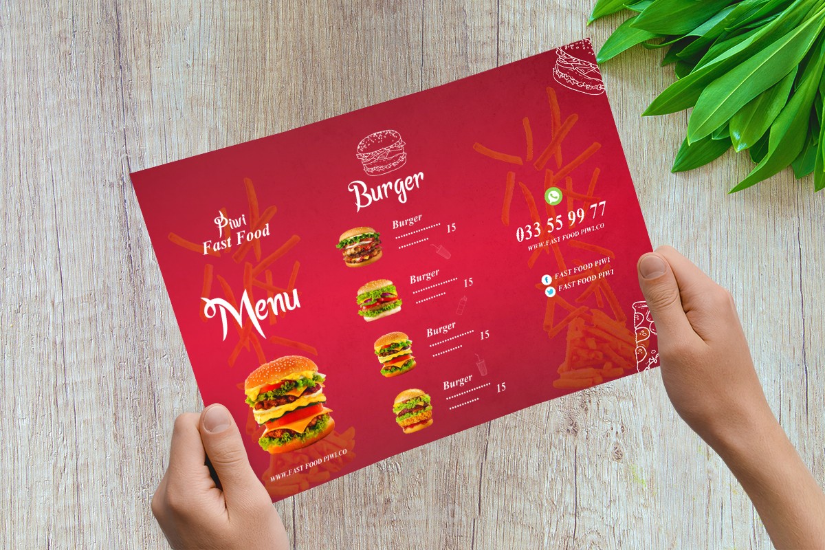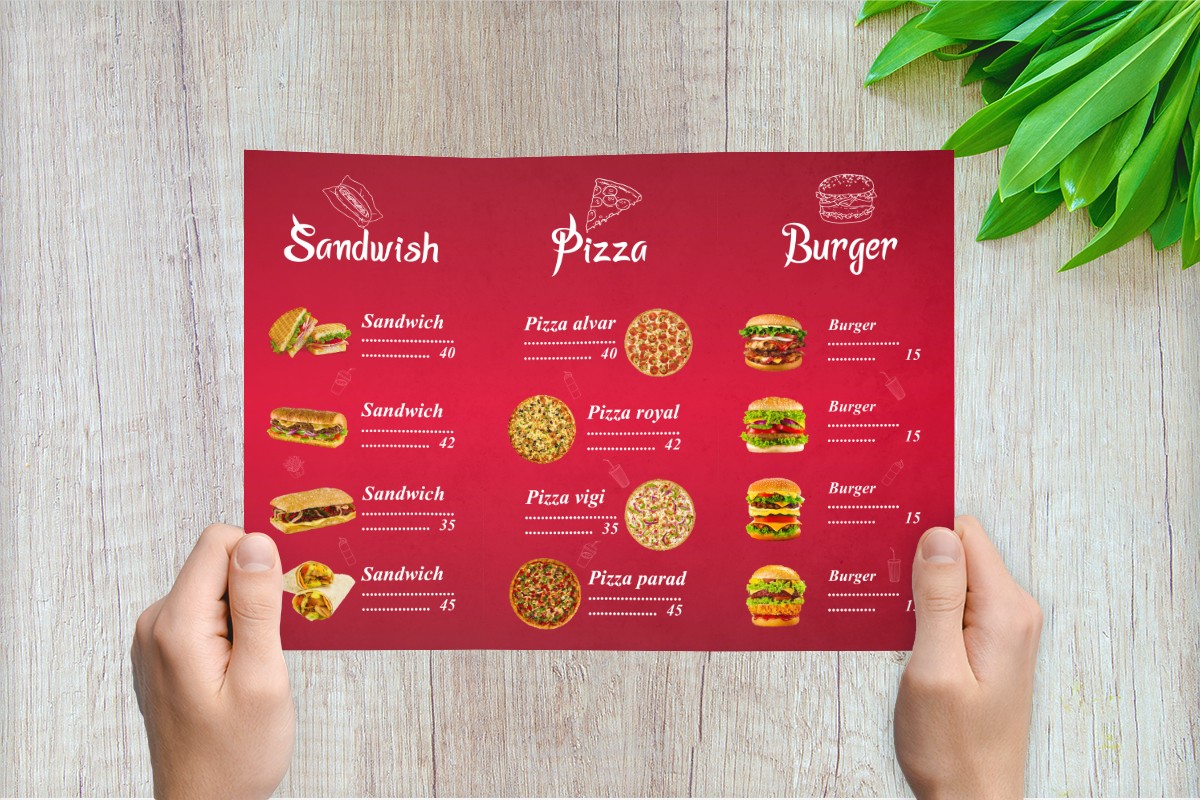 تصميم منيوهات لمطاعم الأكل السريع.