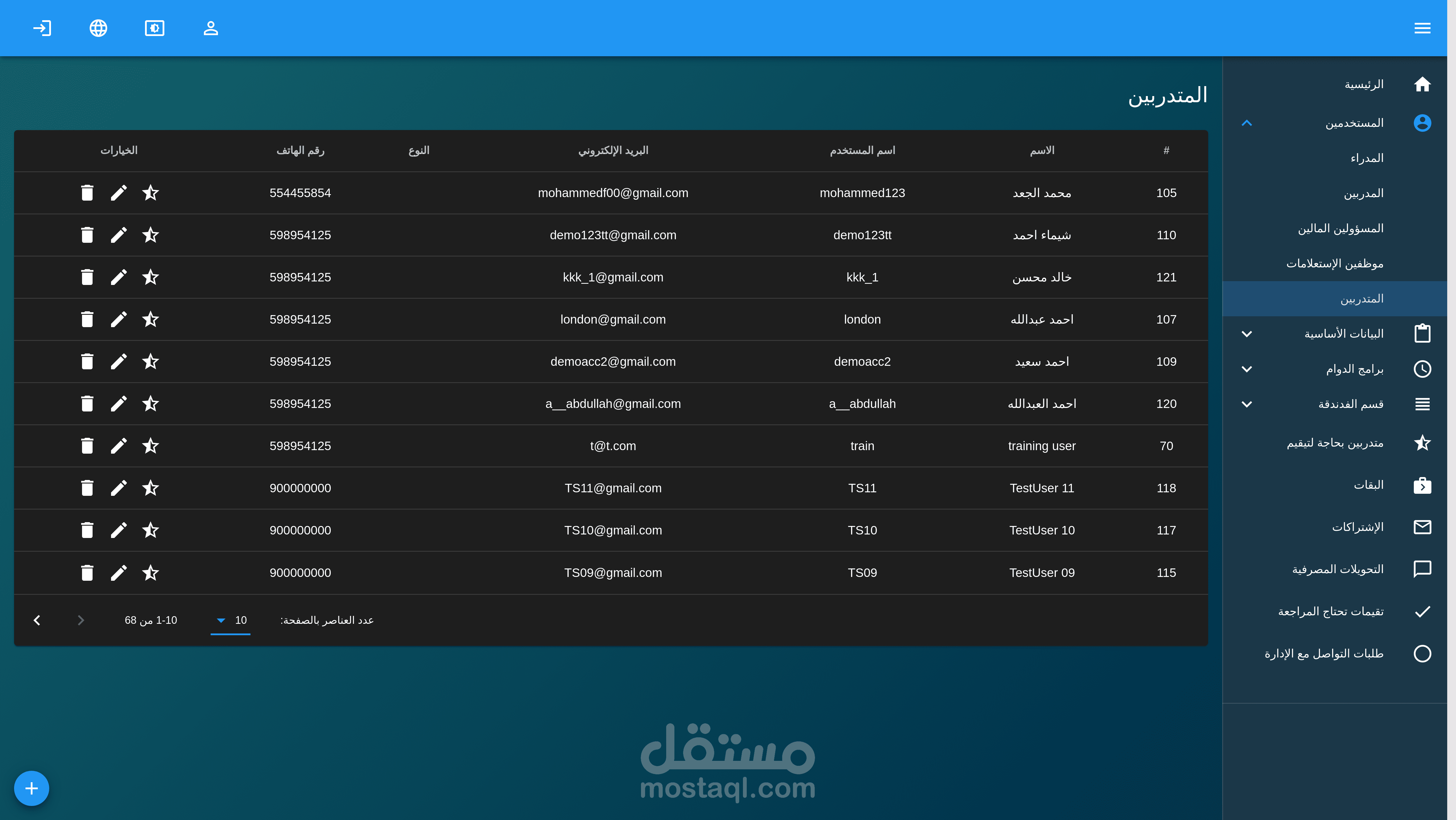 لوحة تحكم لكل من ال admin والمدربين والمتدربين للنادي.