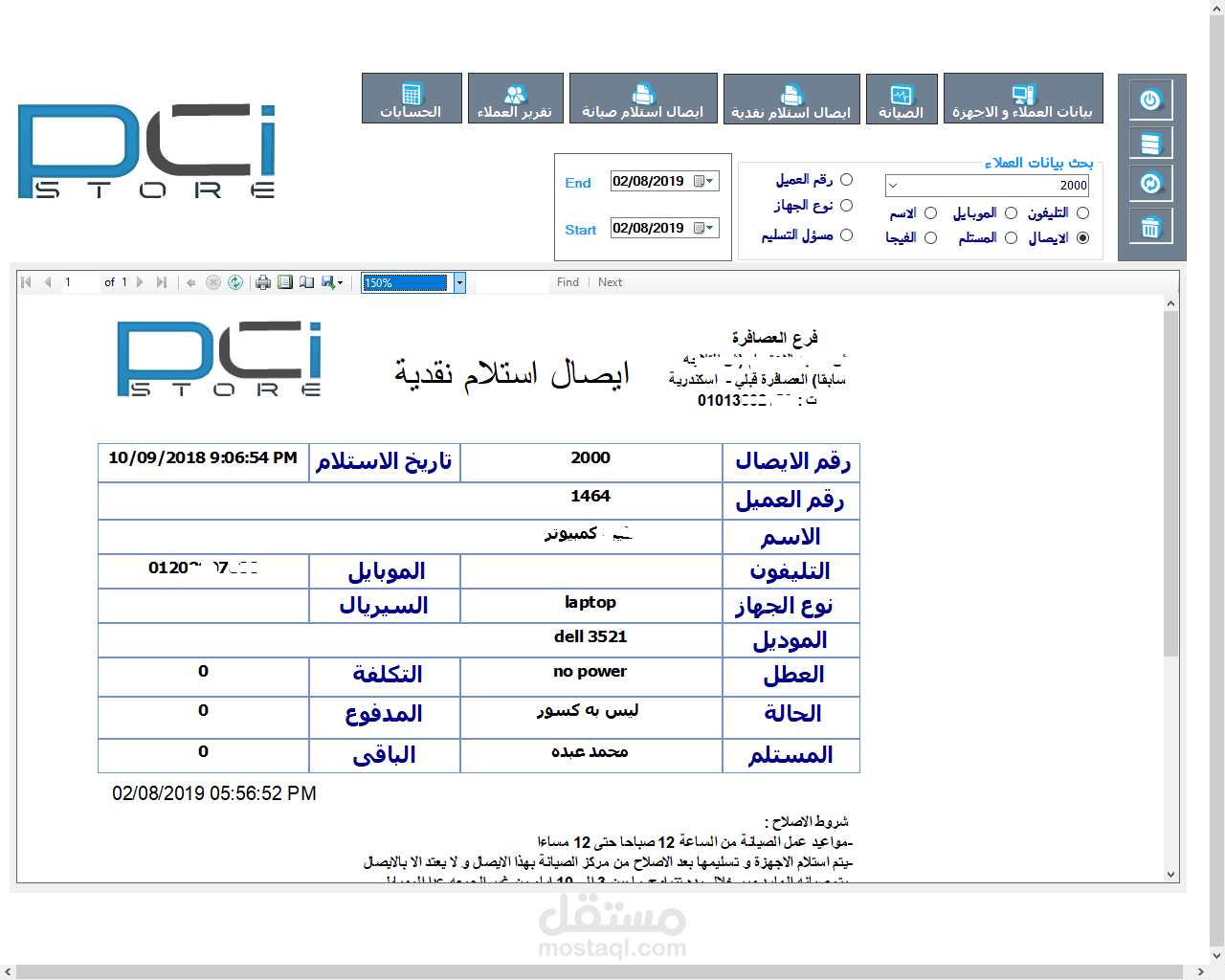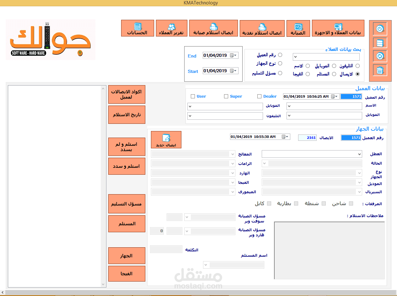 برنامج لادارة قسم الصيانة بمحلات الكمبيوتر او الموبايل