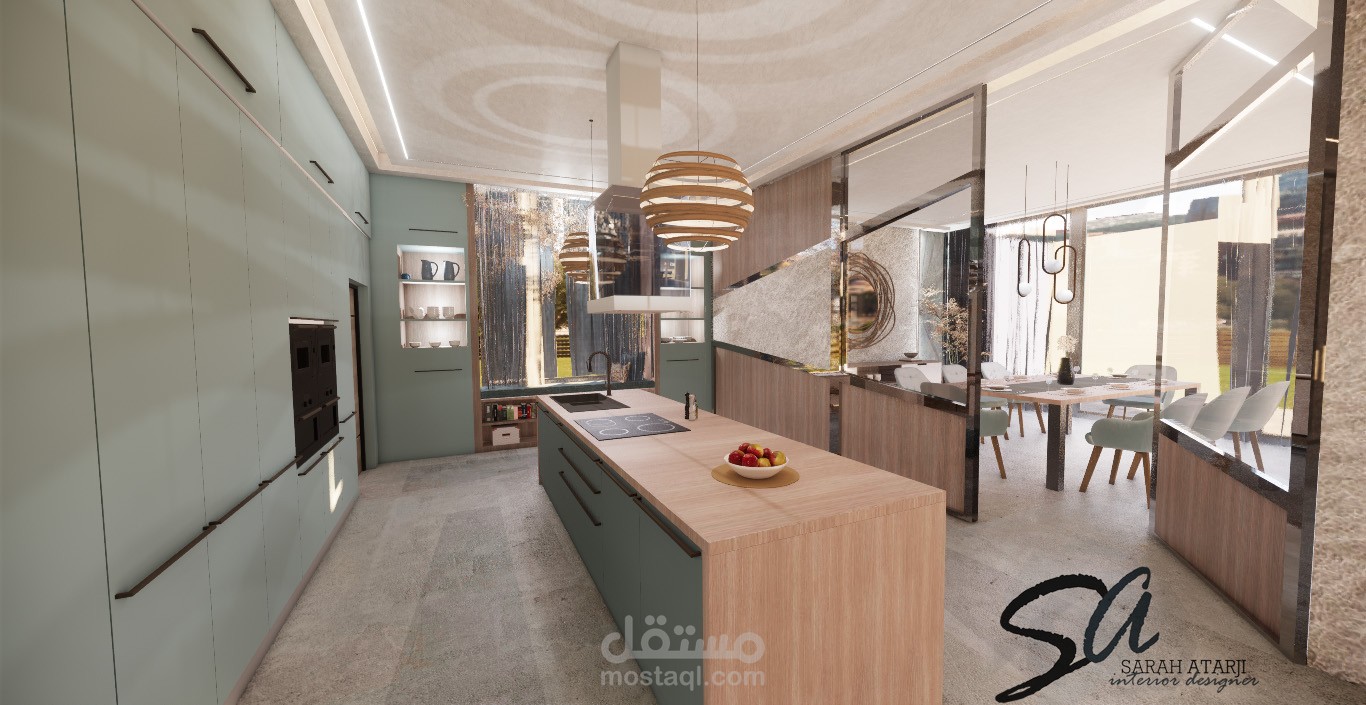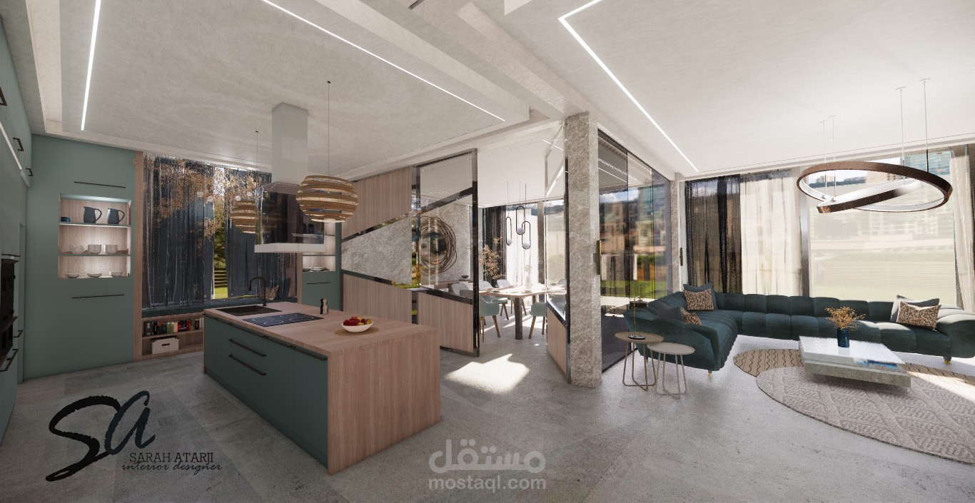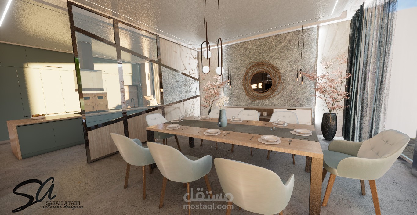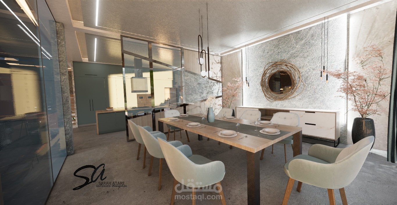 تصميم لمنطقة طعام ومطبخ مفتوح